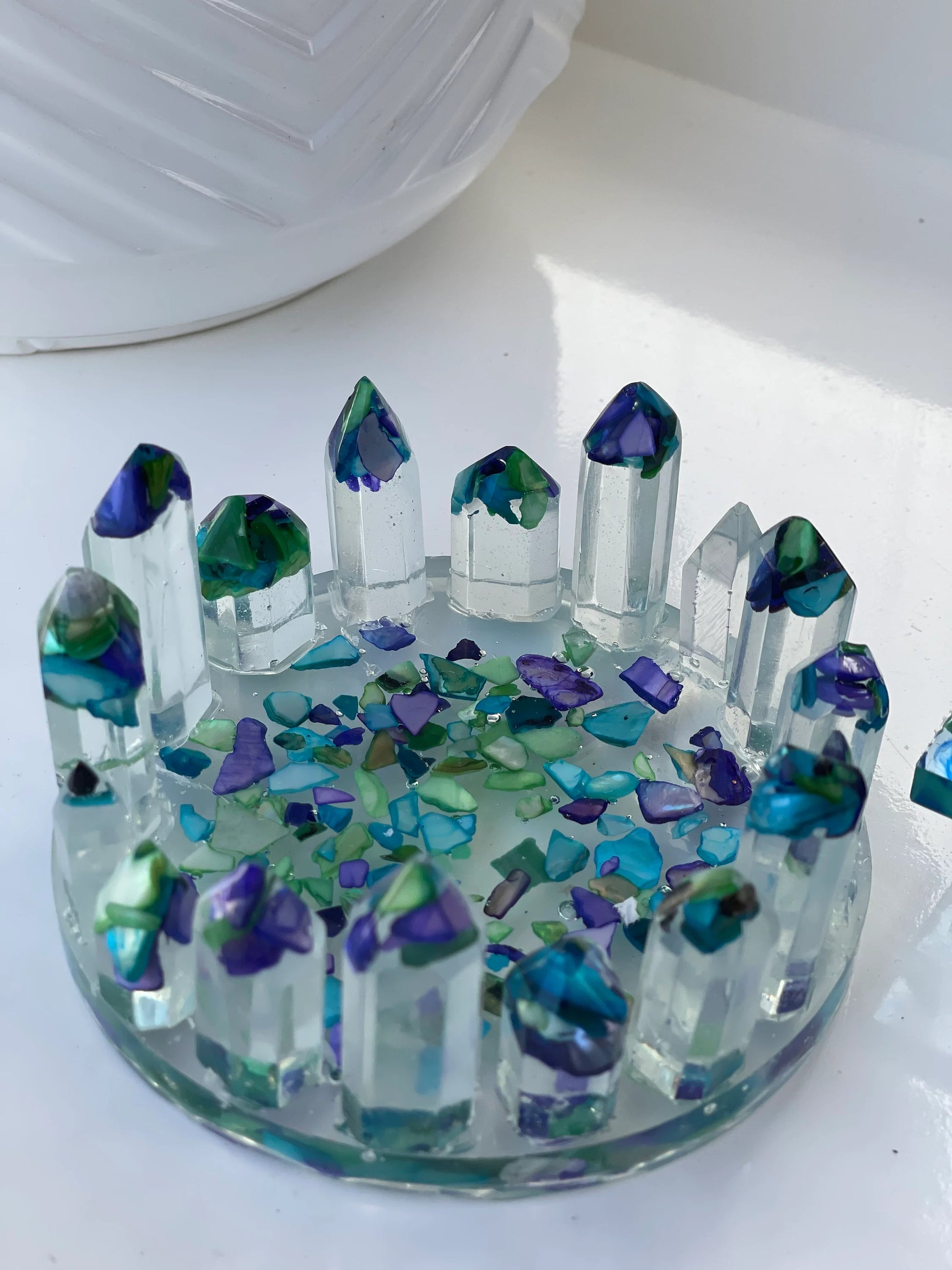This small resin ashtray is perfect for holding candles and tea lights. It's made with high quality epoxy to seal and protect your design against wear and tear, and each ashtray is made individually by hand.