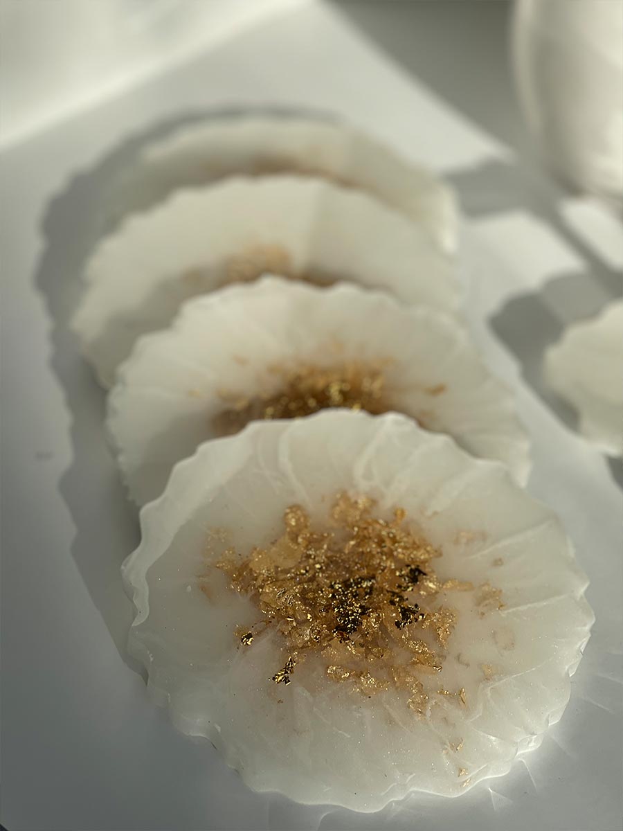 White and Gold Geode Shape Coasters and Tray Set