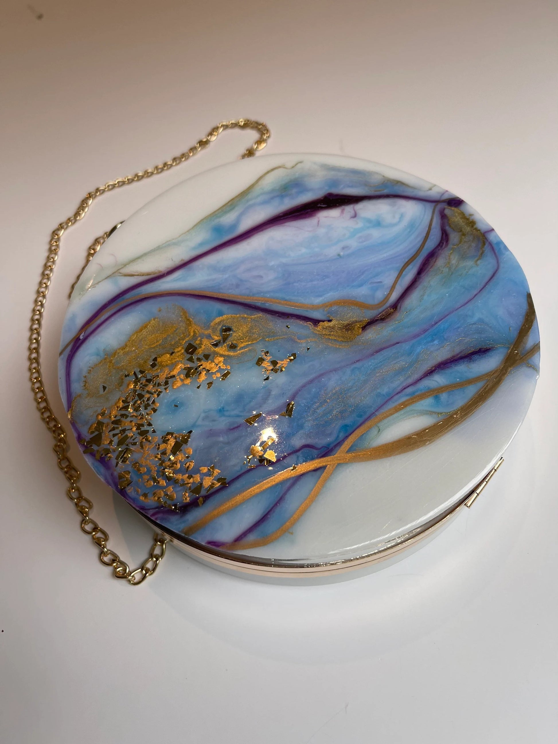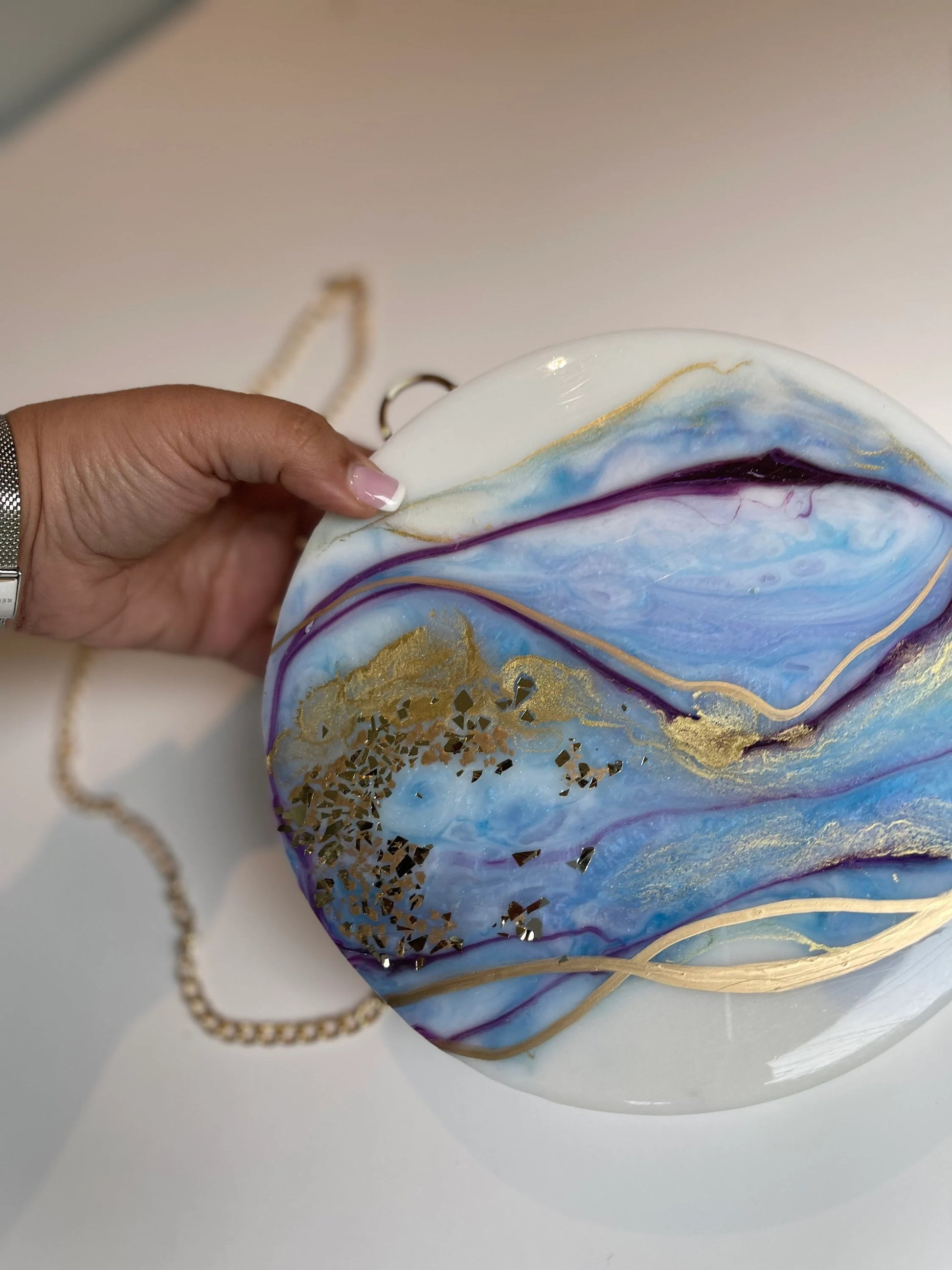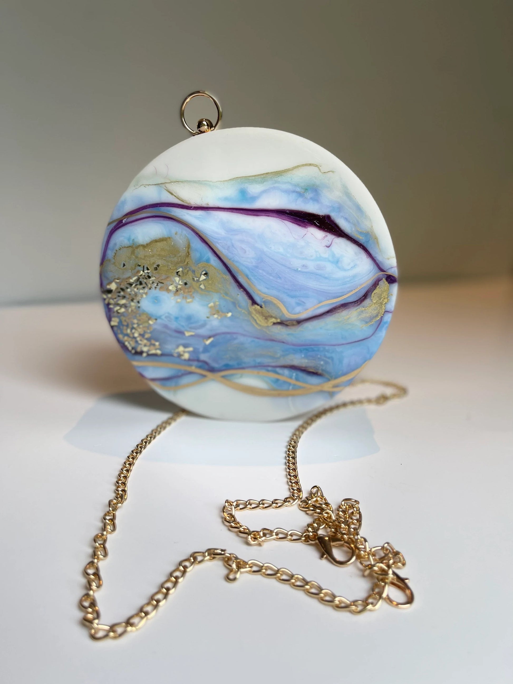 Looking for a new purse that's both stylish and functional? Look no further than this white and blue handbag/clutch! This one-of-a-kind purse is handmade, meaning it's both unique and of excellent quality. Plus, its large size means it can easily fit all your essentials, from your phone to your lipstick to your wallet. So why not treat yourself to this must-have accessory? You deserve it!
