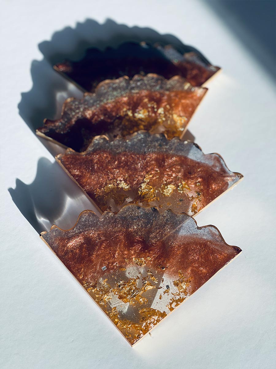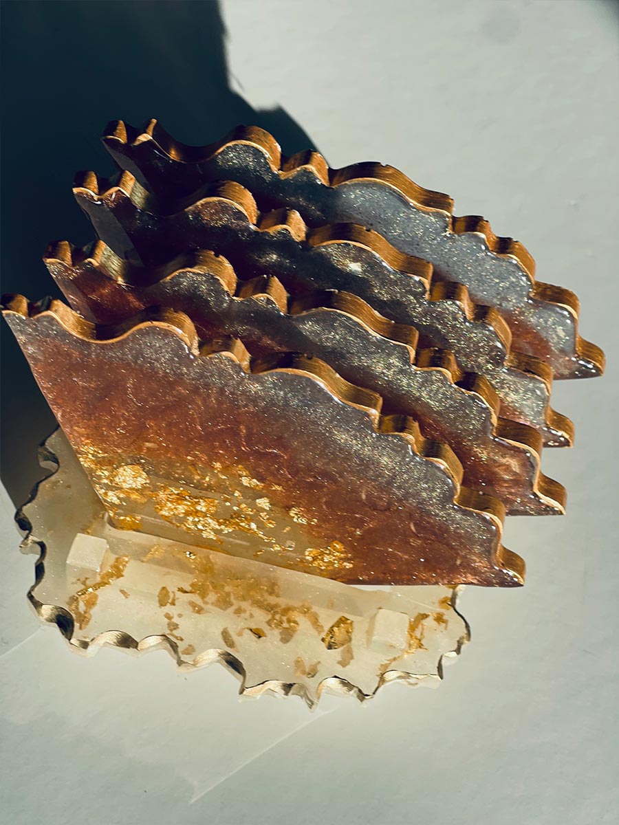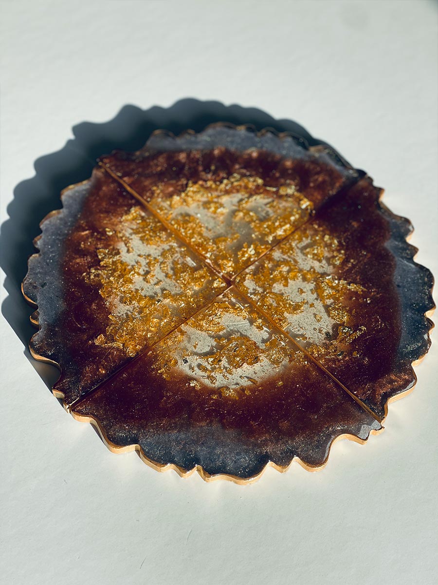 This set of four Brown Geode Shape Coasters is perfect for any home. The set includes one large and three smaller coasters that are made from 100% silicone, protecting surfaces from condensation and drips while also adding a pop of color to your kitchen or dining room table. These stylish coasters will make your next party or evening at home more enjoyable!