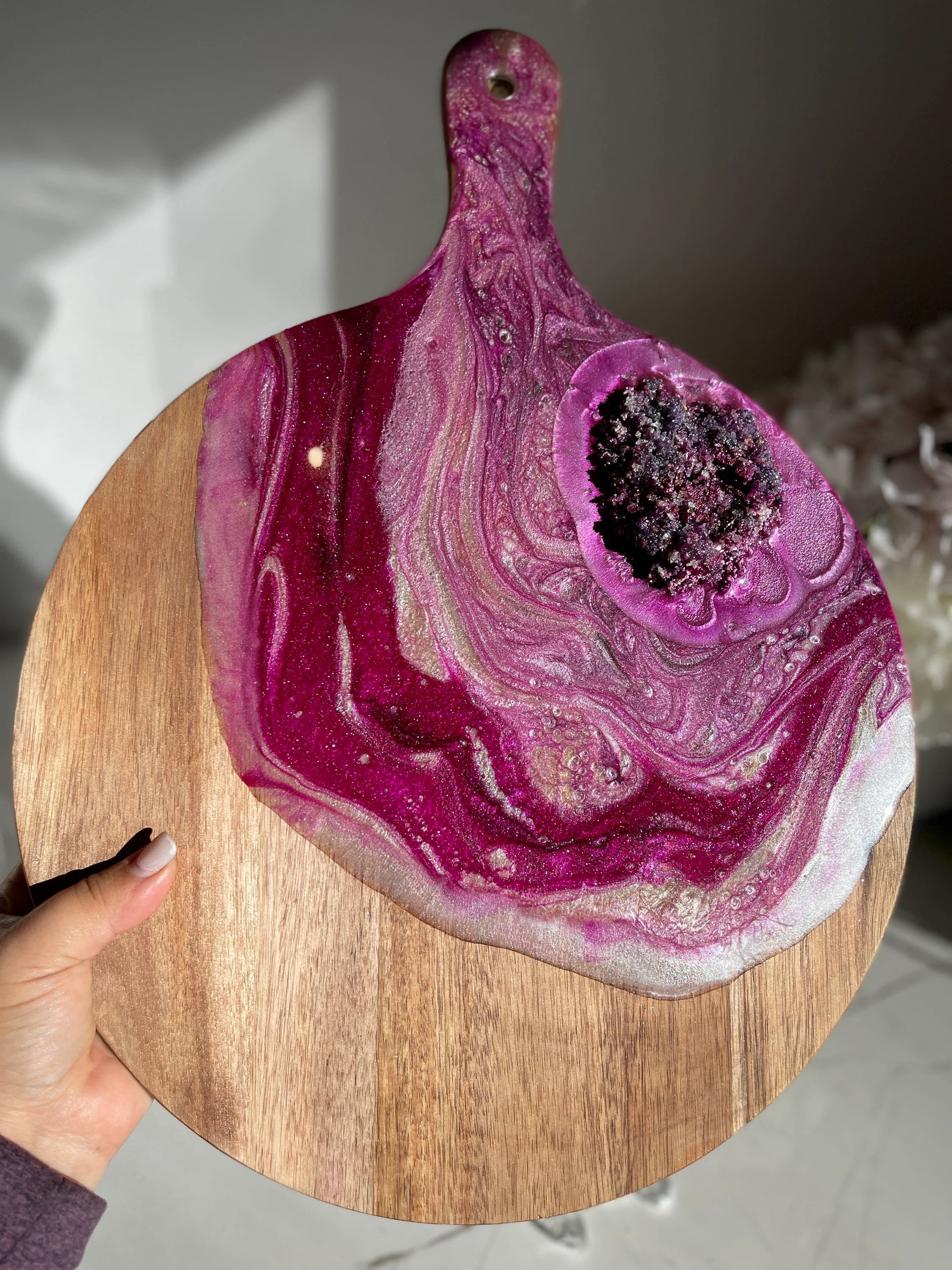 Round Purple and Pink Color Geode Marble Design Cheeseboard