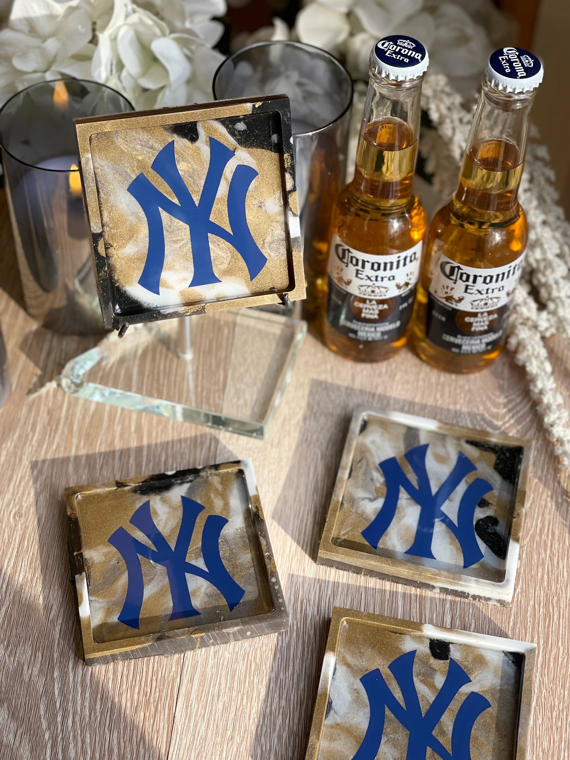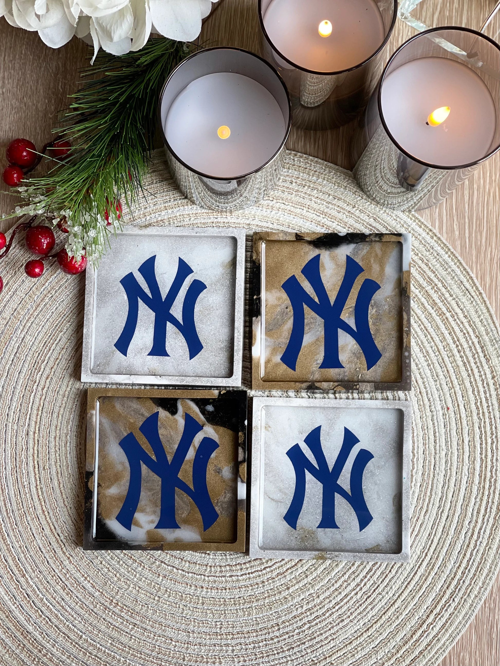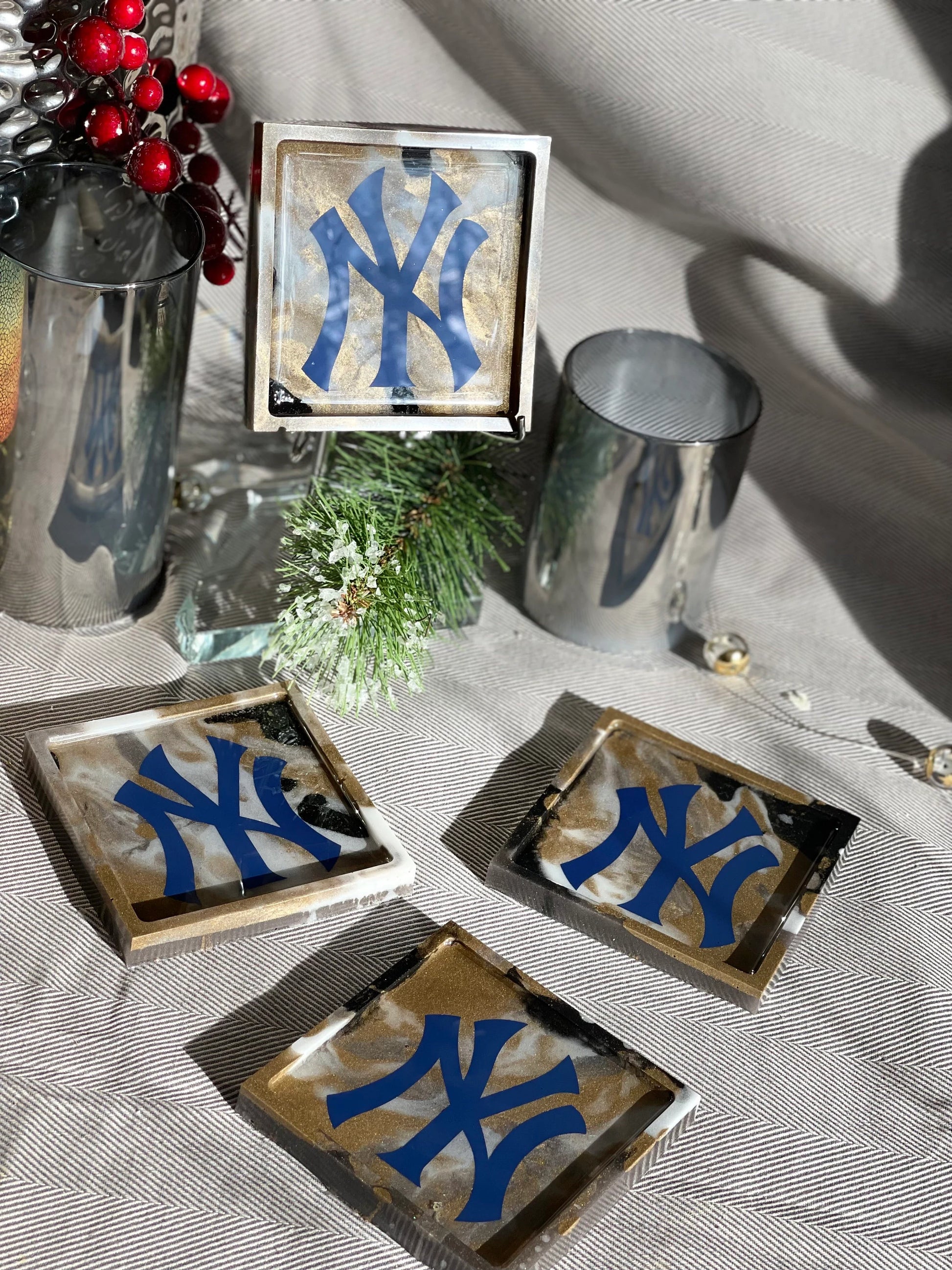New York Yankees fan dream !! Handmade from scratch with high-quality resin and a vinyl decal. These are one of a kind Yankees coasters to hold your drink while you watch the game =)