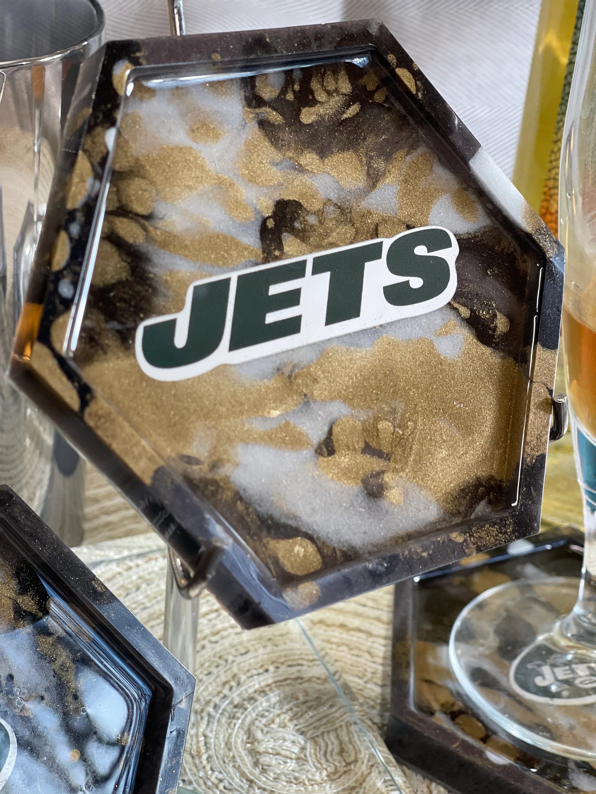 Jet's fan dream !! Handmade from scratch with high-quality resin and a vinyl decal. These are a one-of-a-kind Jet's coaster to hold your drink while you watch the game
