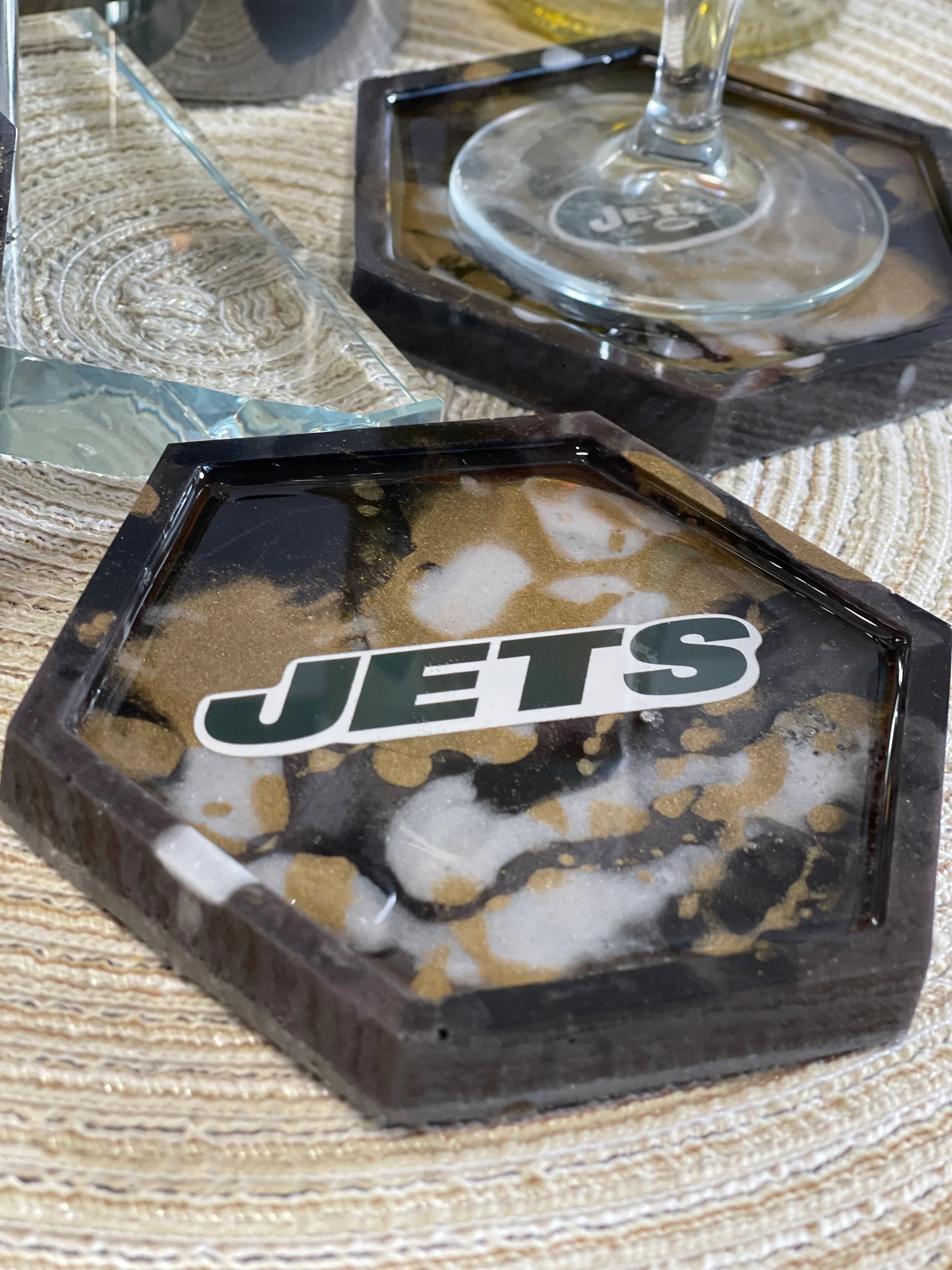 Sports Coasters Jet's Fan Dream!!! One of a Kind Set of 4 Jets Coasters with a Beautiful Brown Gold Marble Design