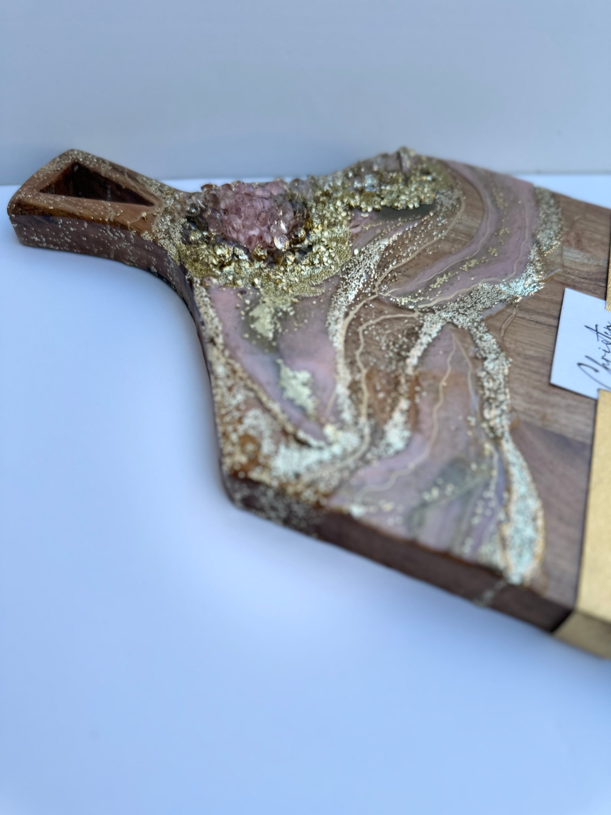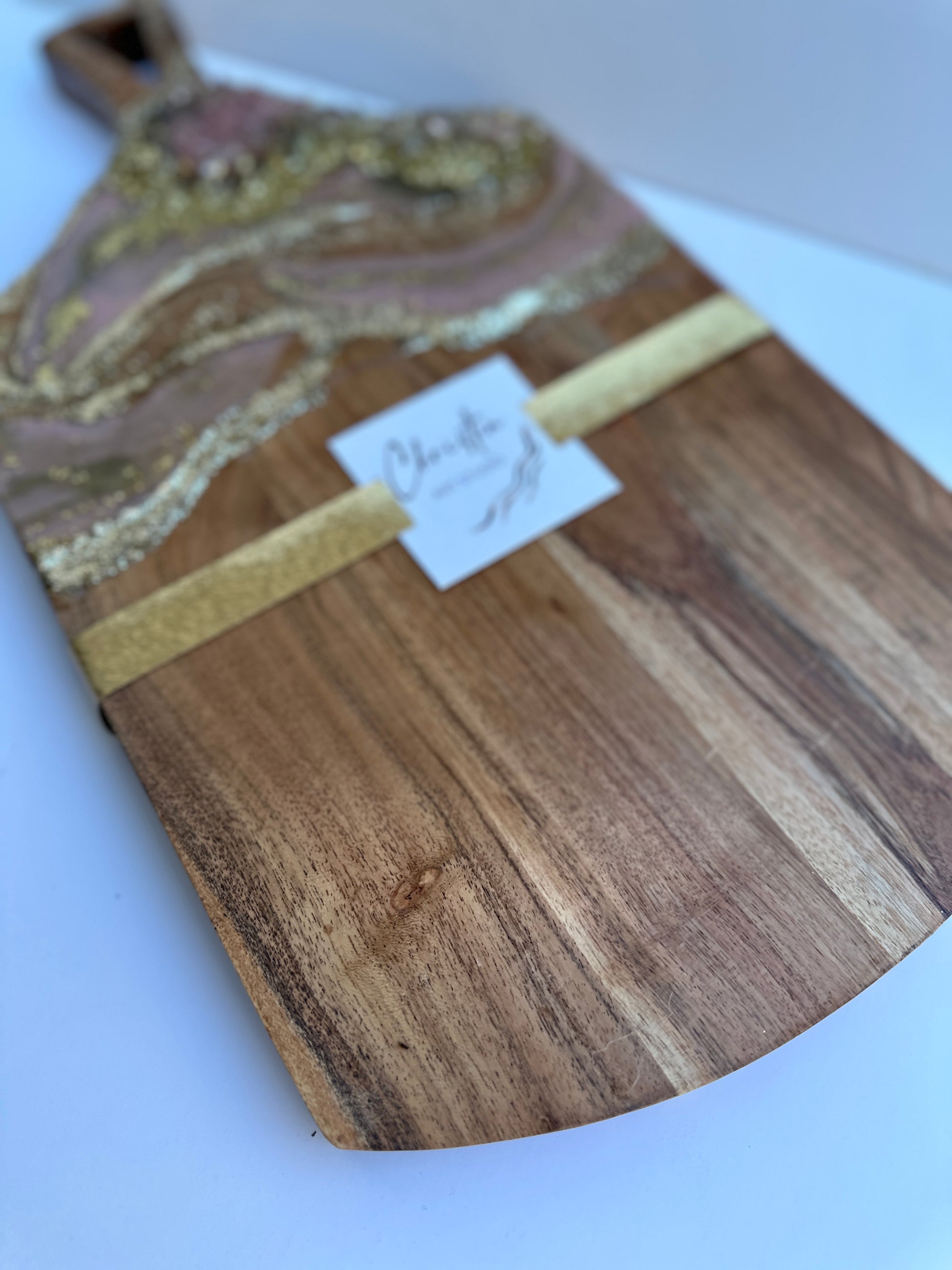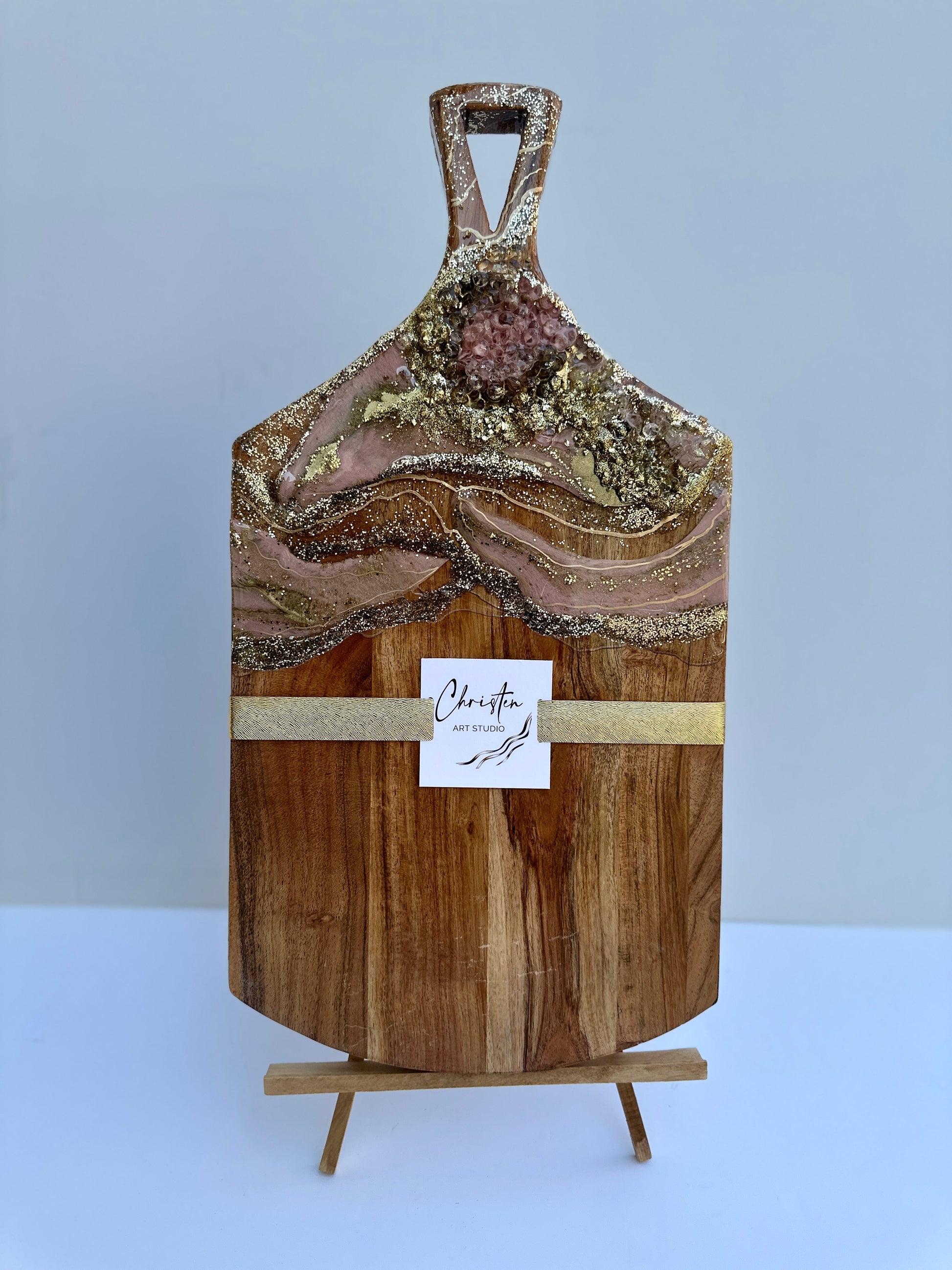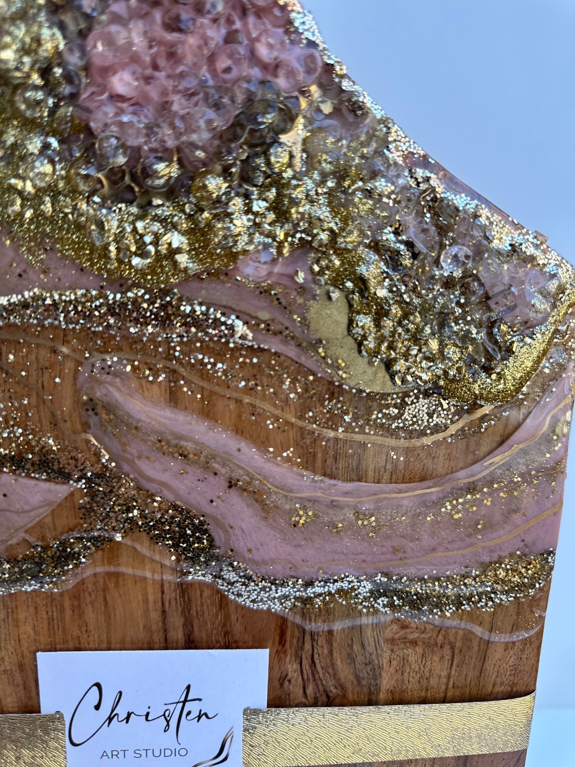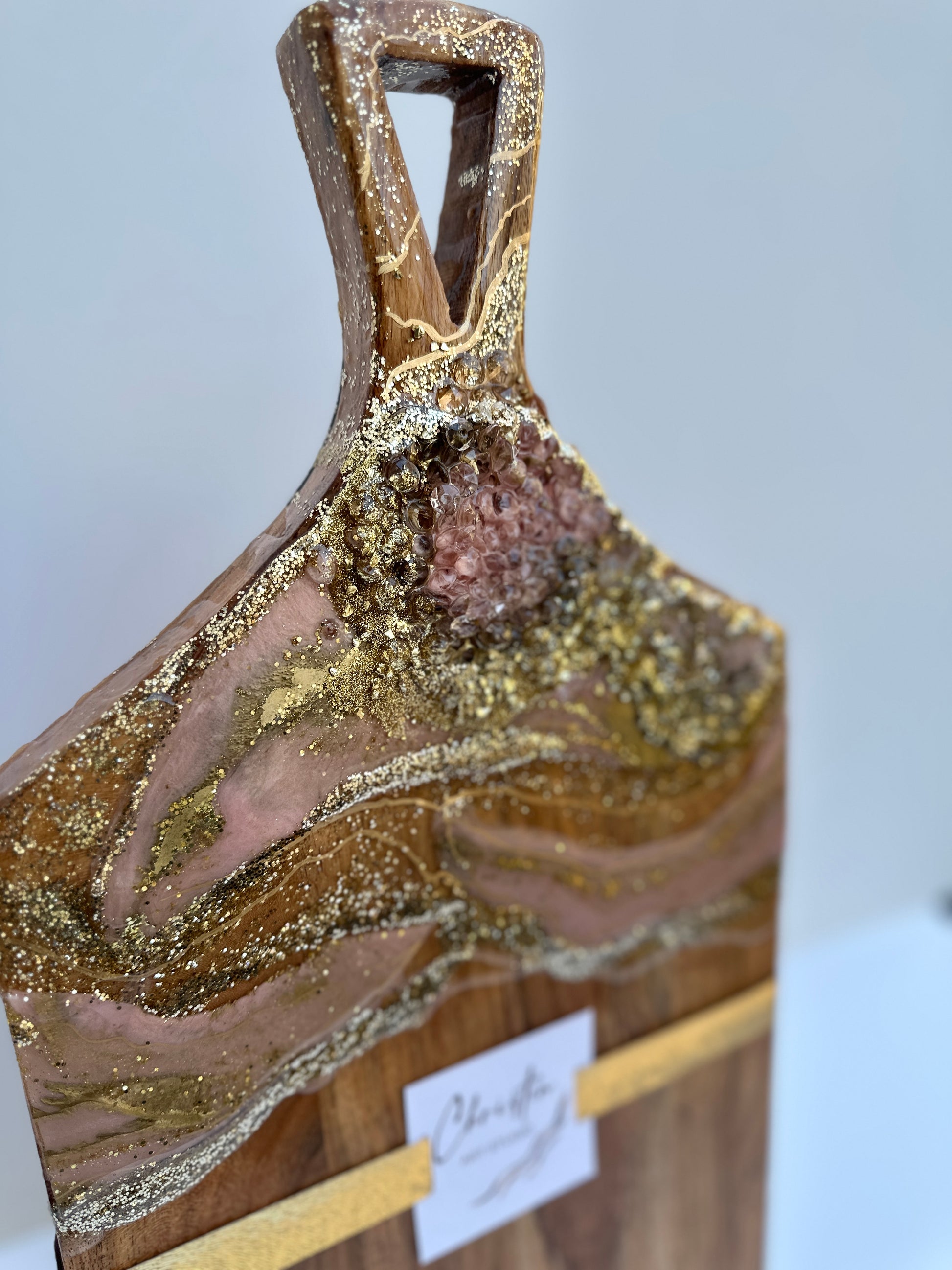 The beautiful resin art is hand-poured in blush pink with gold colors, making this a unique board. It is an excellent present for weddings, birthdays, housewarmings, and more. Plus, it's also perfect for displaying in your kitchen as part of your interior styling.