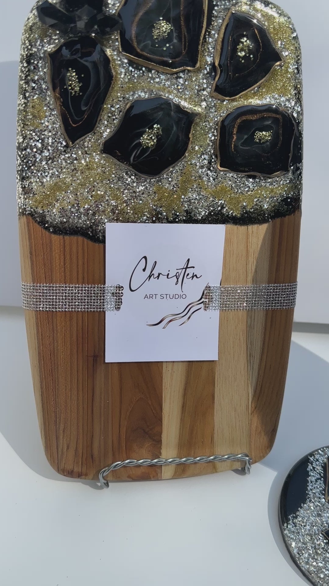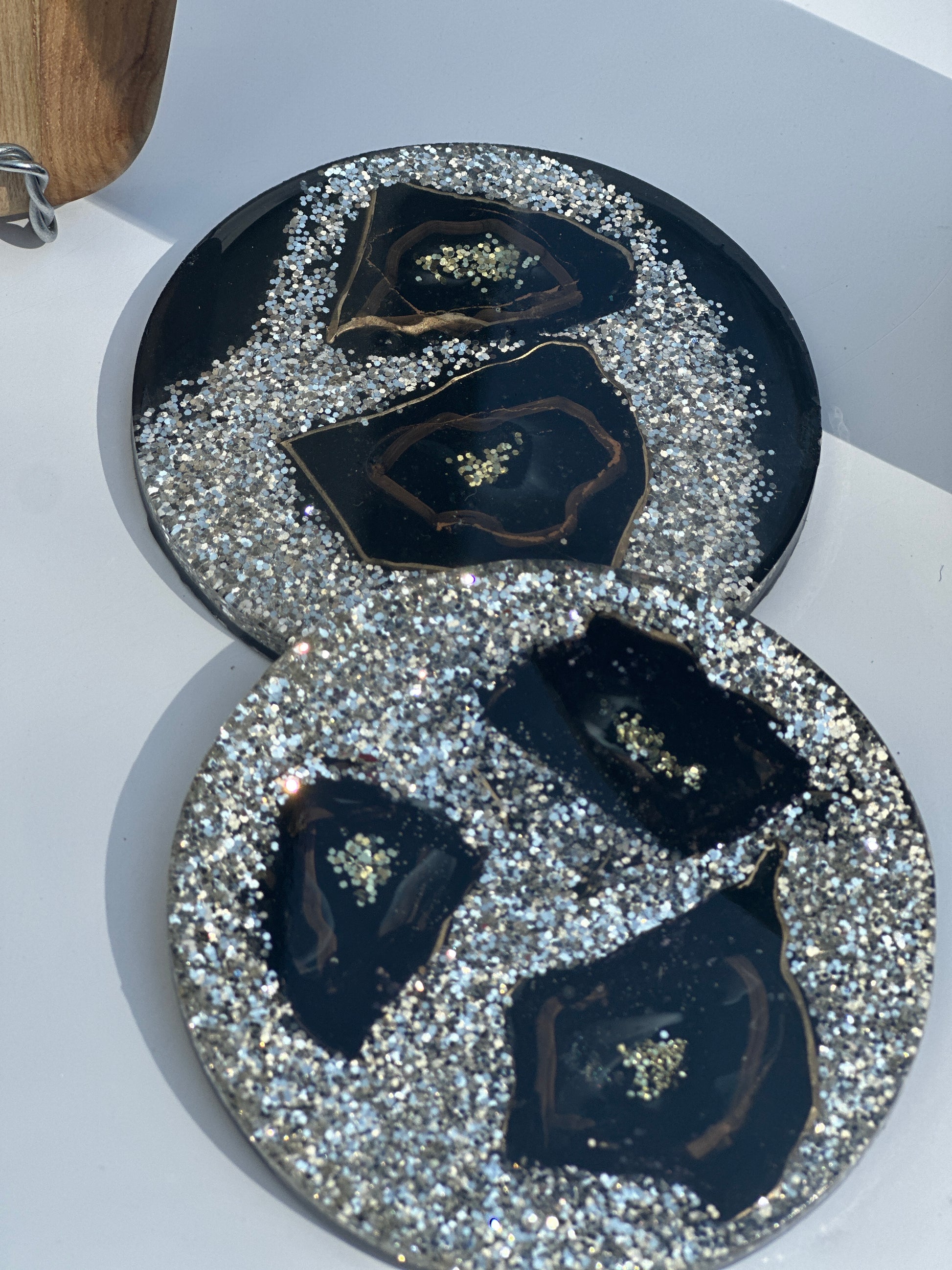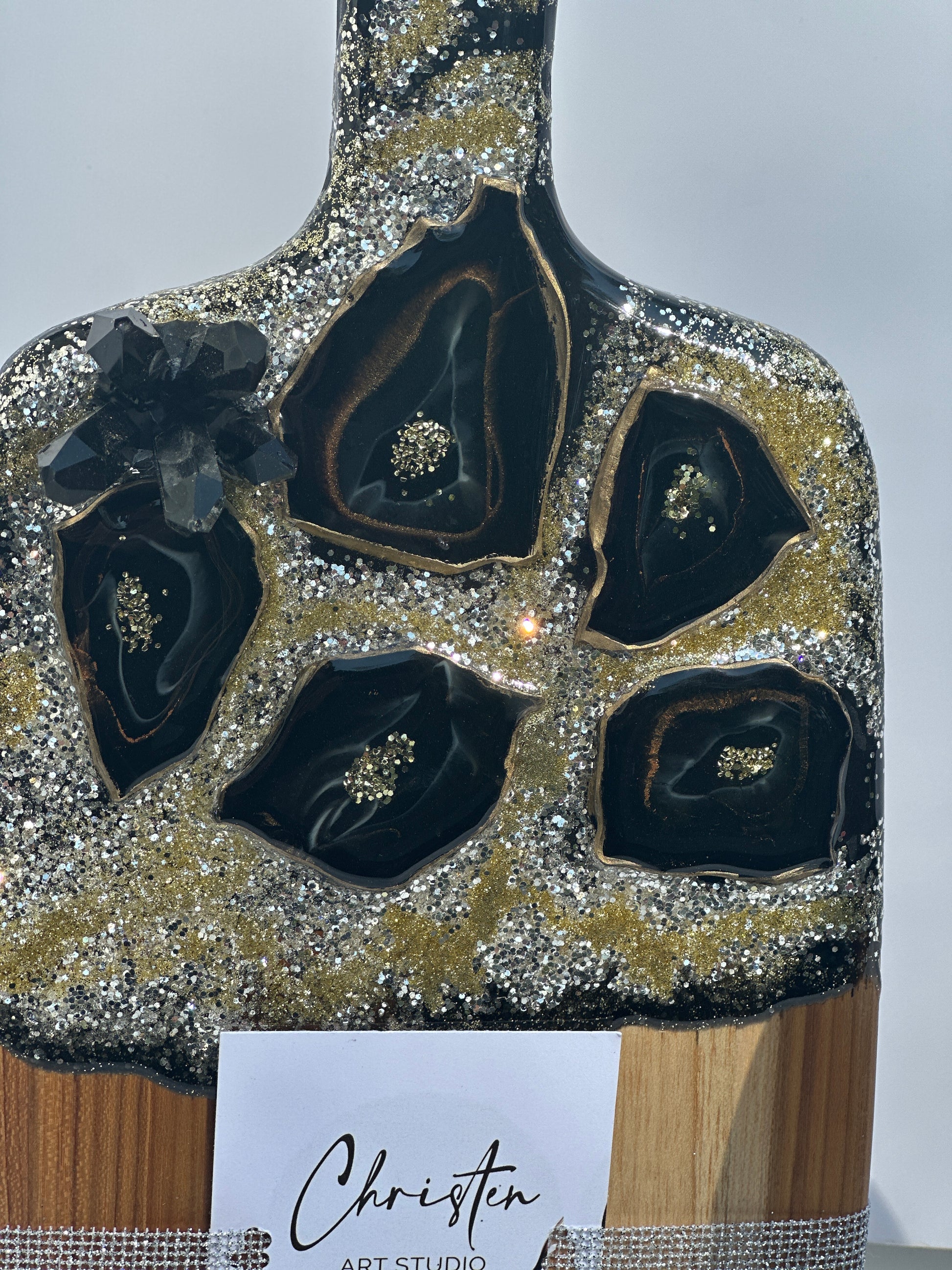 #GeodeWineGlassEleganceSet #HandmadeBoardSet #GeodeDesign #BlackCrystals #EpoxyResin #HomeDecor #NatureInspired #UniqueGiftIdea #ElegantServingBoard #LuxuriousEntertaining #MatchingCoasters #WineGlassHolders