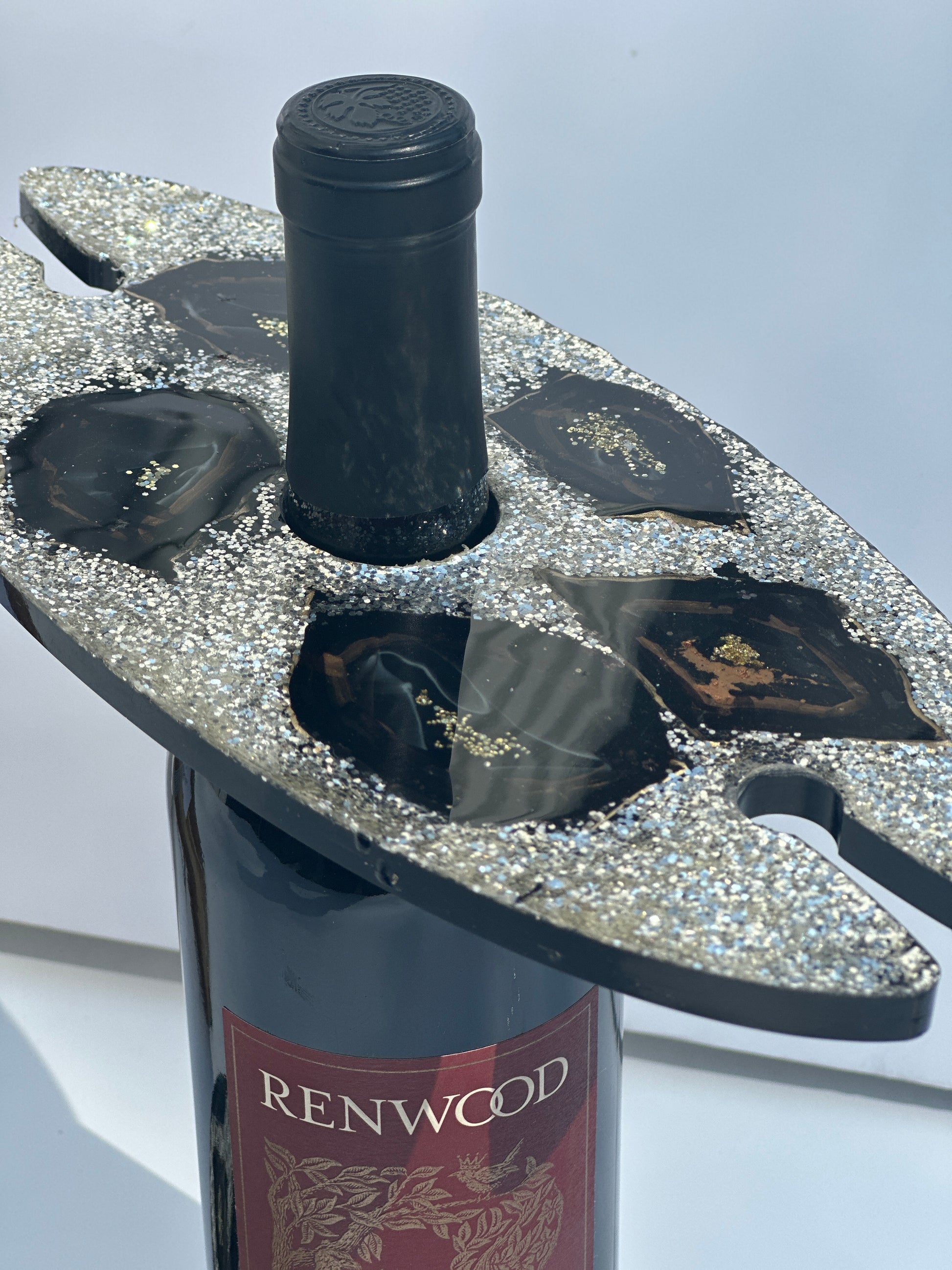 The set also includes two matching coasters and two wine glass holders, flawlessly complementing the board and elevating your presentation. Impress your guests with the sparkling, eye-catching design of our Geode Wine Glass Elegance Set.