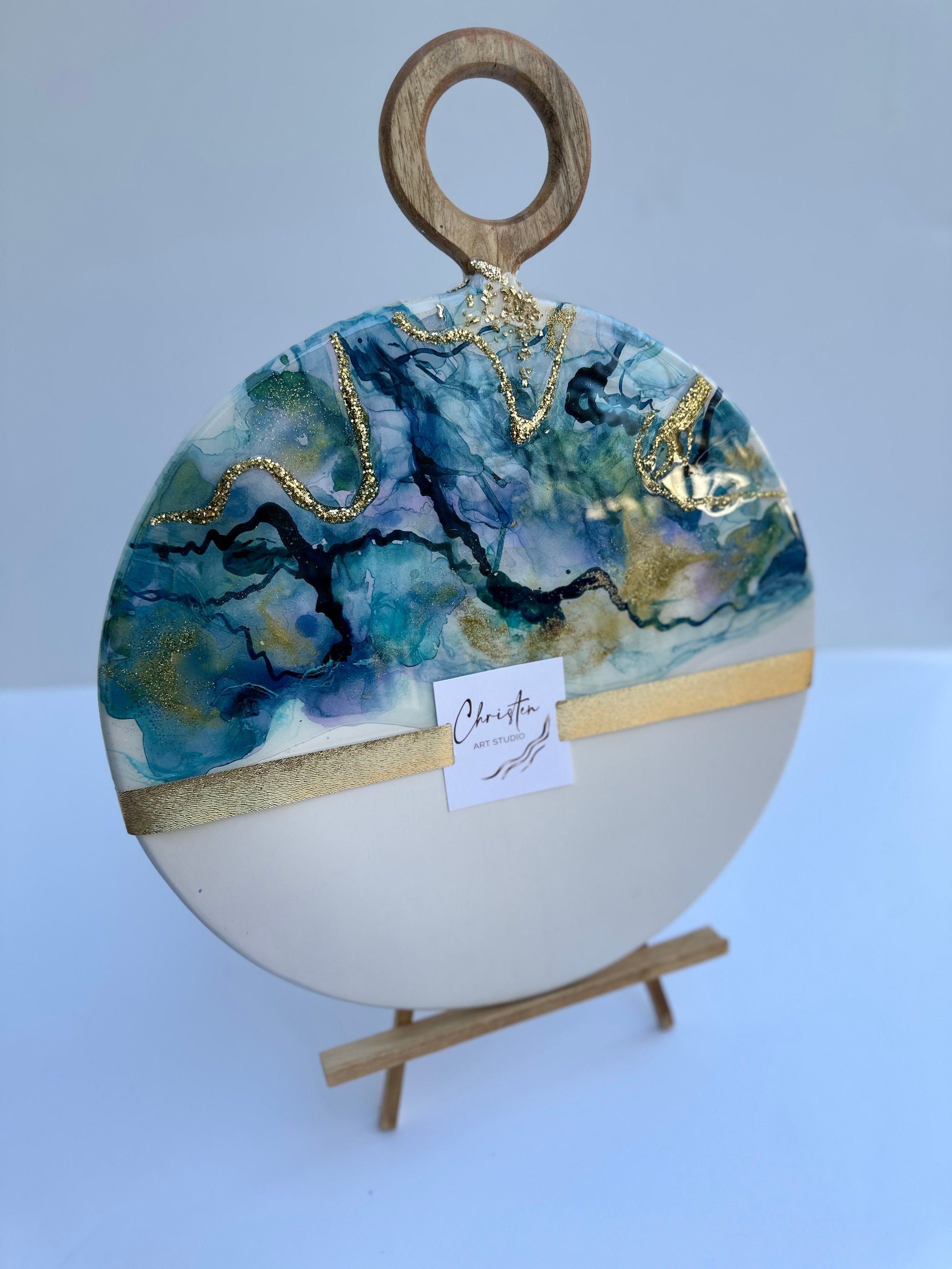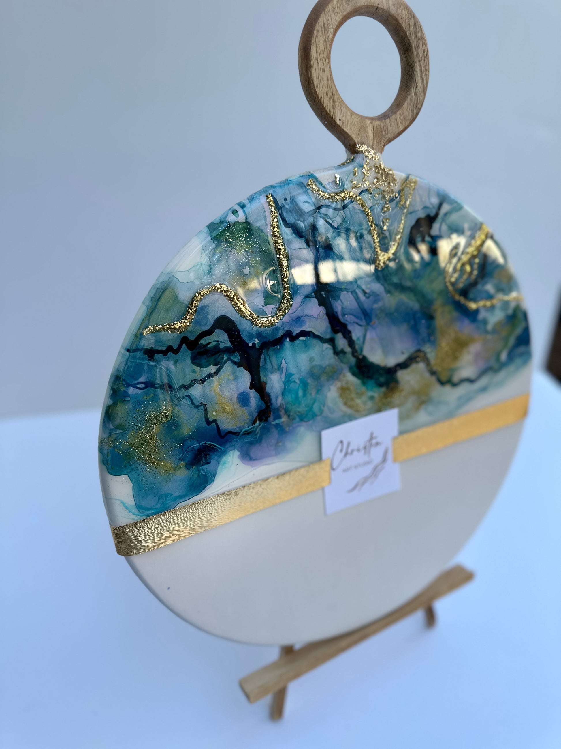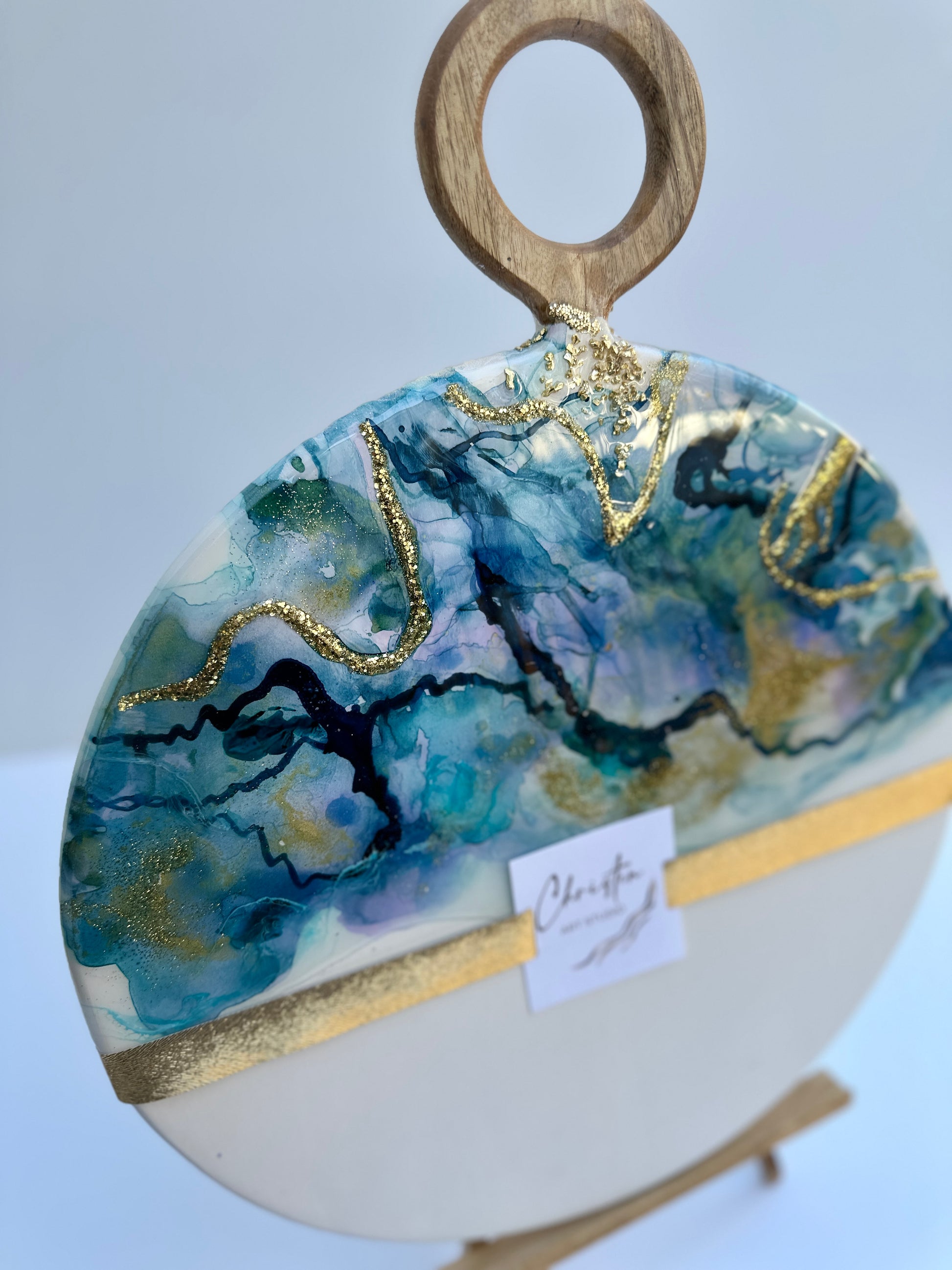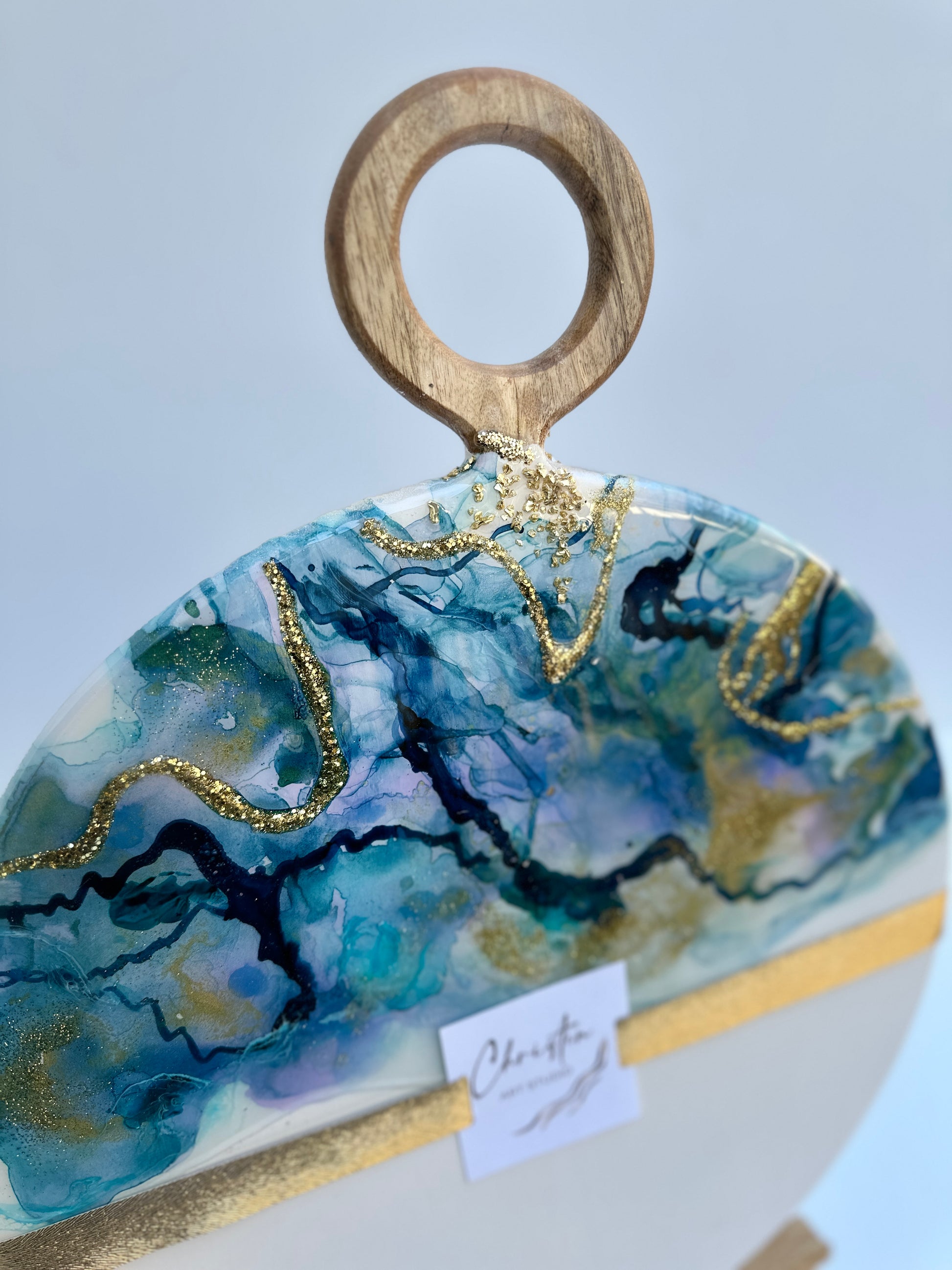 The beautiful resin art is hand-poured in pink and purple colors, making this a unique board. It is an excellent present for weddings, birthdays, housewarmings, and more. Plus, it's also perfect for displaying in your kitchen as part of your interior styling.