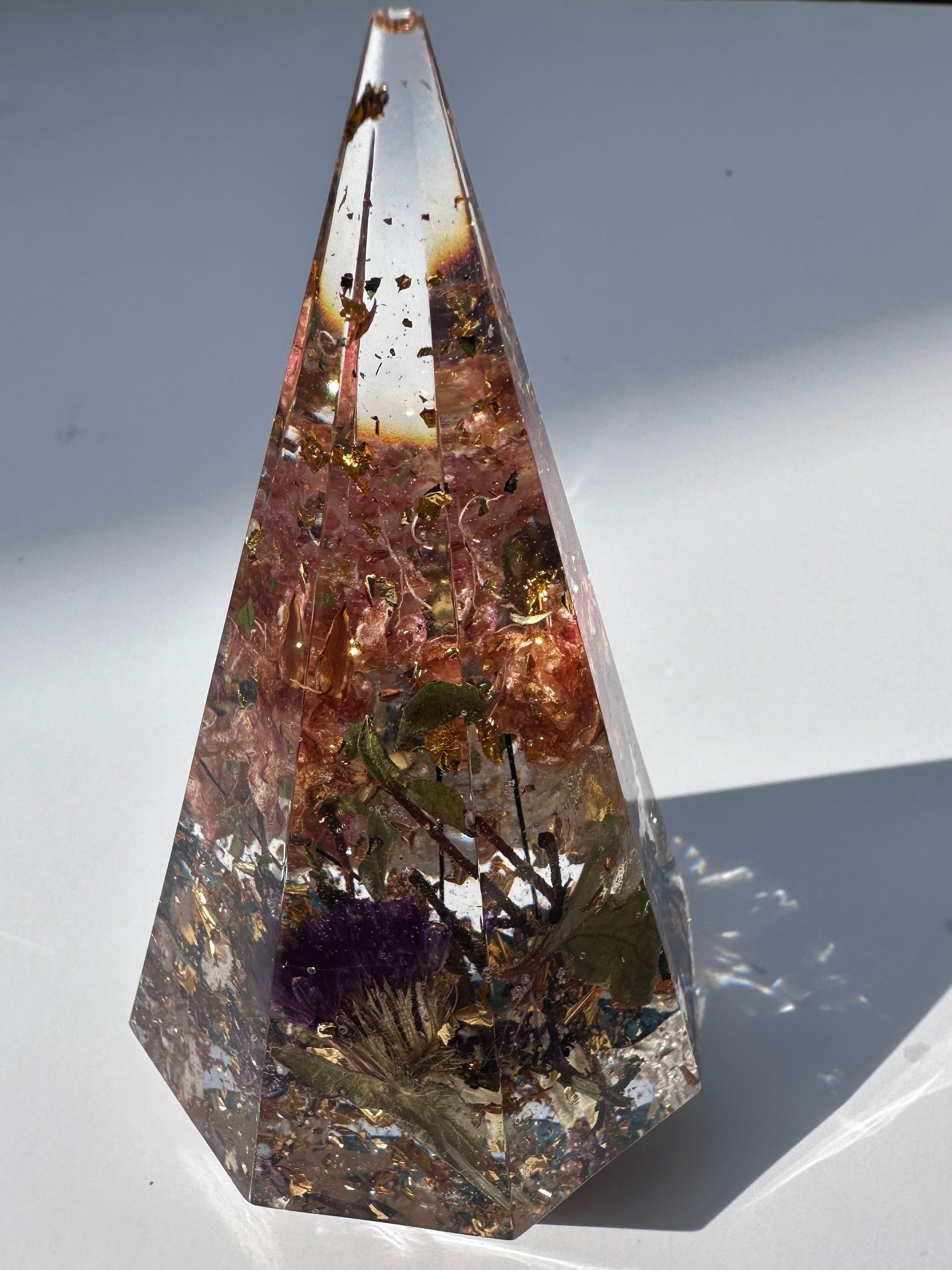 Add elegance to your vanity with these handmade Enchanted Blossom Resin Ring Holders, featuring real dry flowers and gold flakes. These unique 2.55" diameter and 4.6" tall holders are heat-resistant and customizable in color. Perfect for displaying rings and small jewelry, they make a thoughtful gift for loved ones. Order now and elevate your jewelry storage with nature-inspired beauty.