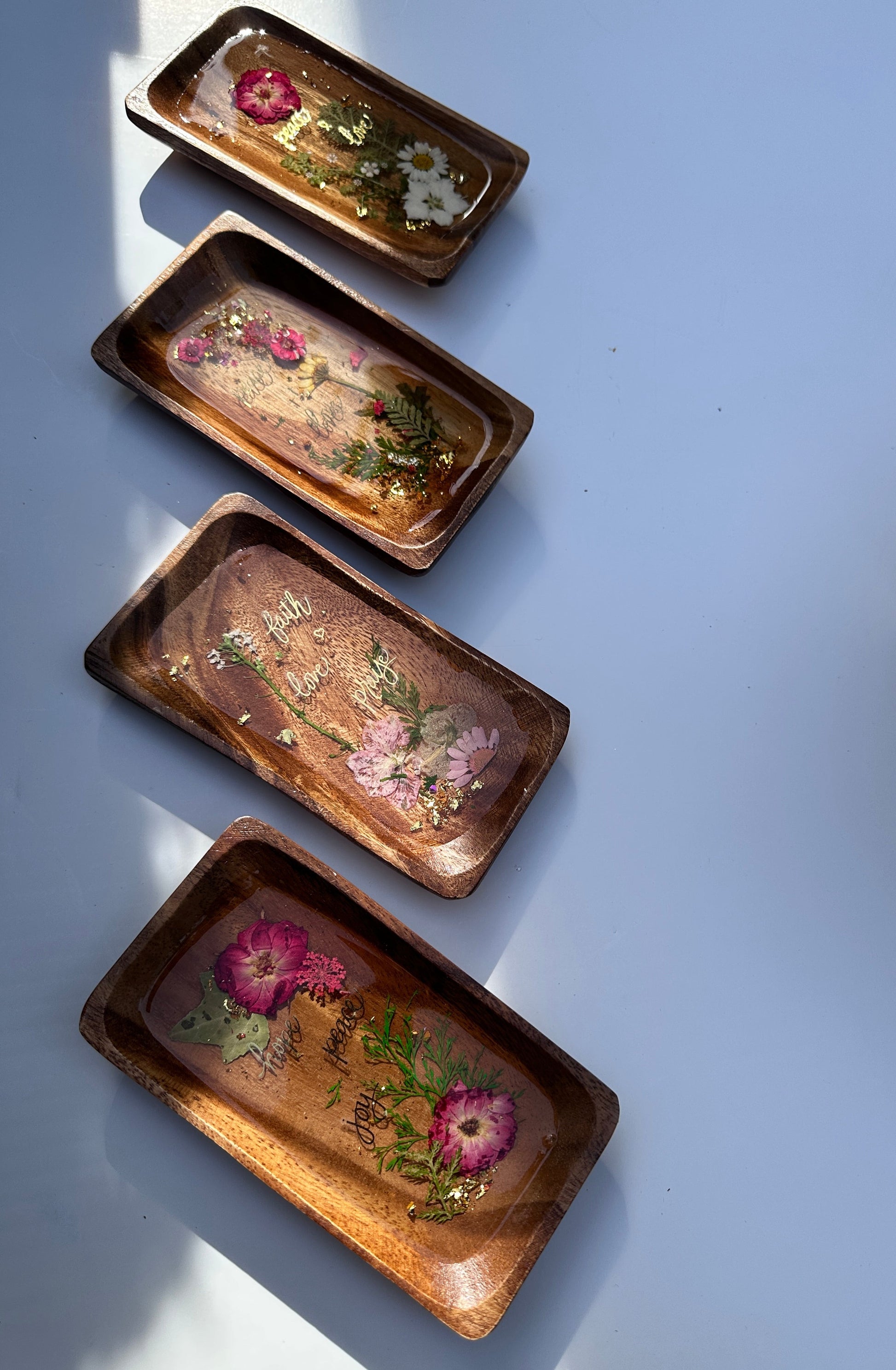 #InspirationalBlossomTrinketTrays #HandmadeTrinketTrays #DryFlowerDesign #GoldFlakes #EpoxyResin #HeatResistant #HomeDecor #NatureInspired #UniqueGiftIdea #ColorfulTrays #InspirationSayings