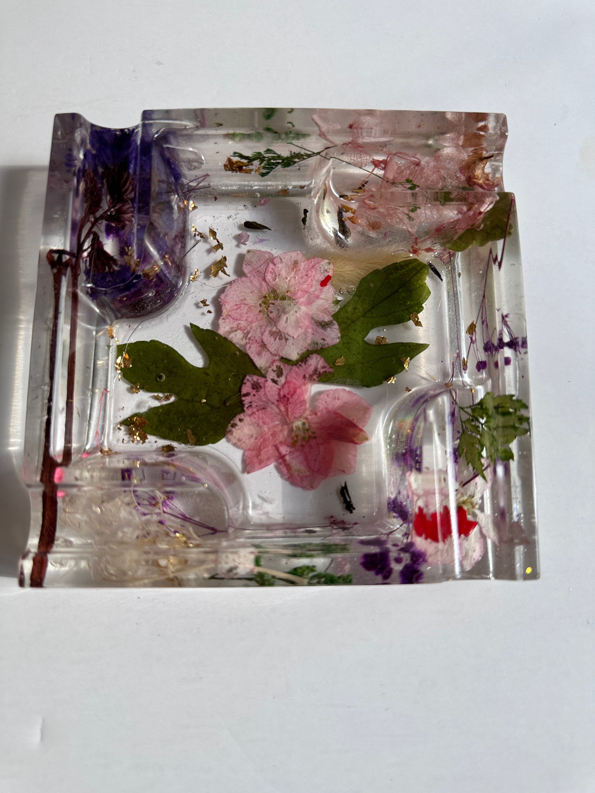 #BlossomBlissAshtray #HandmadeAshtray #DryFlowerDesign #GoldFlakes #EpoxyResin #HeatResistant #HomeDecor #NatureInspired #UniqueGiftIdea #ColorfulAshtray