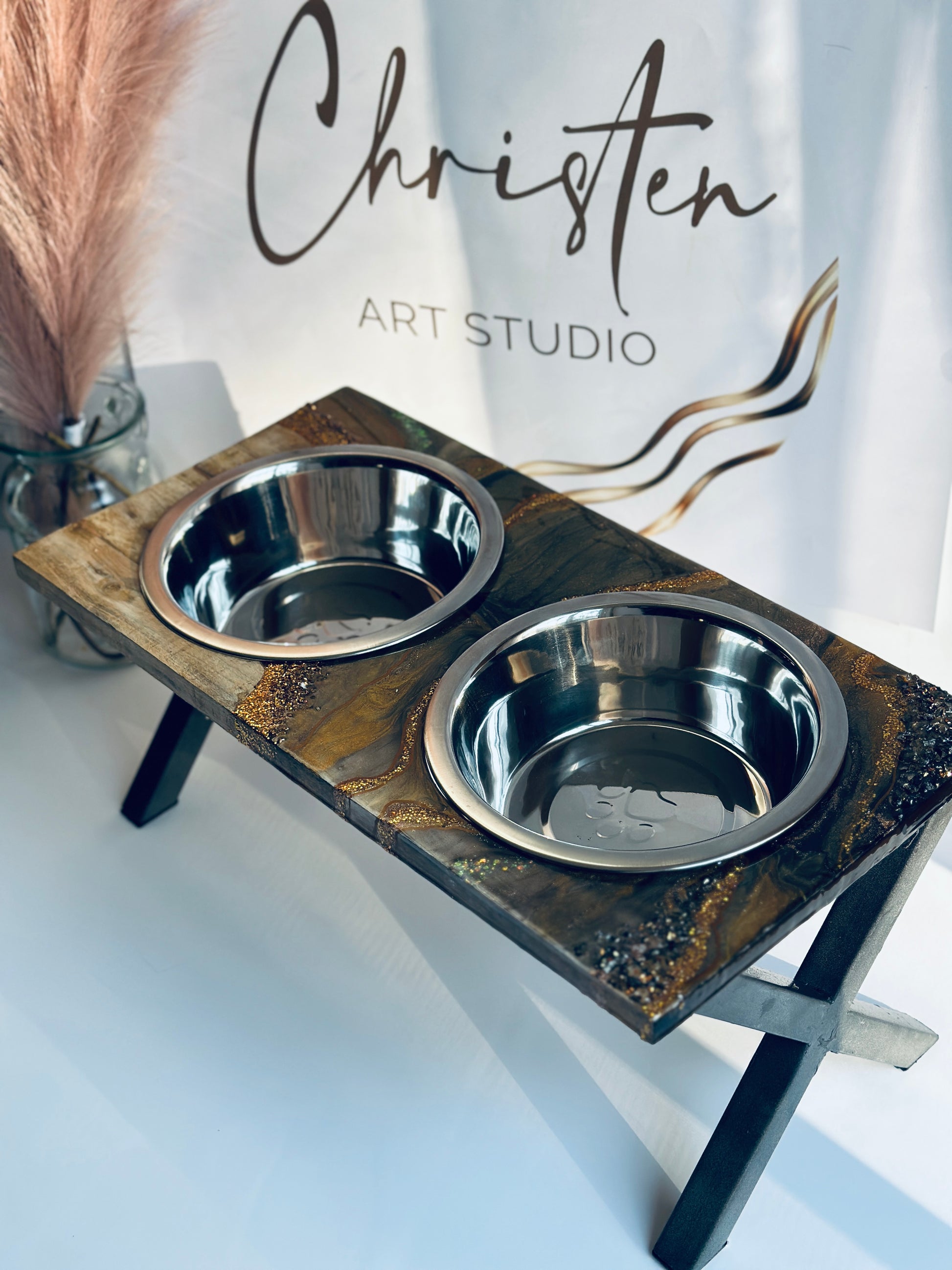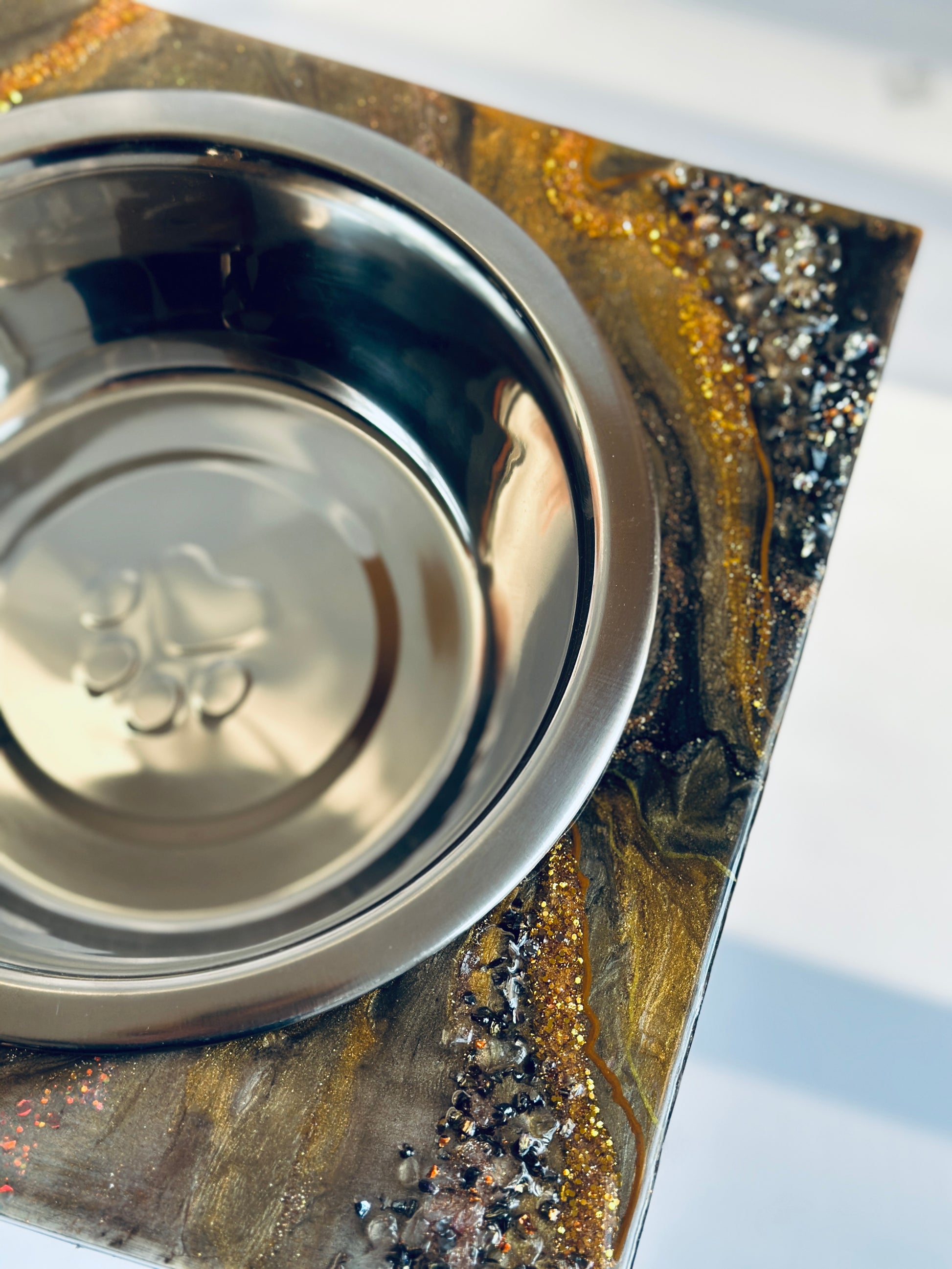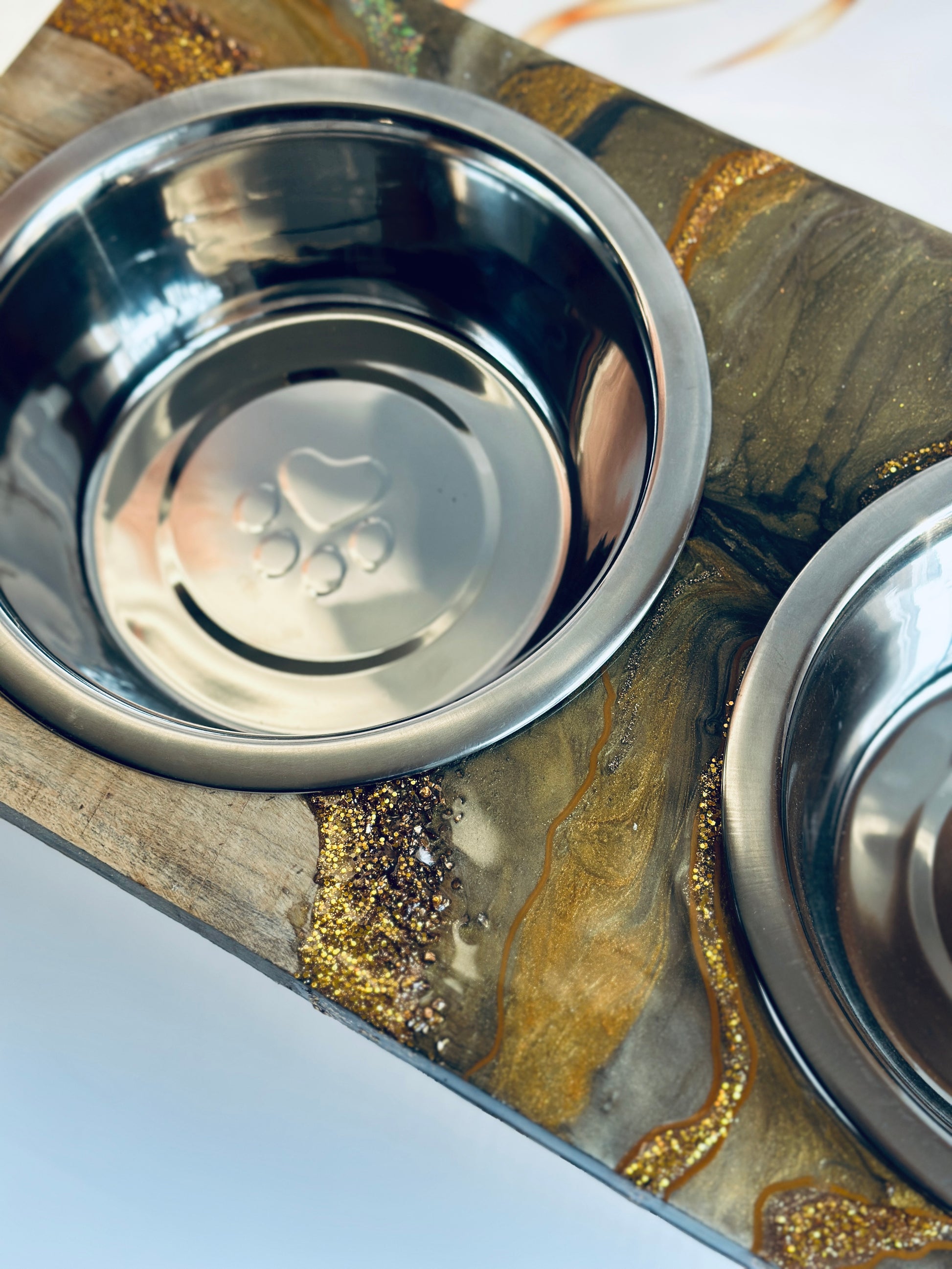 Looking for a unique pet feeder that is also high-quality and functional? Look no further than this handmade wooden pet feeder! Made with beautiful craftsmanship, this feeder is perfect for displaying your pet's food in a stylish way. The hand-poured resin design is food-safe and looks great, while the stainless steel bowl is durable and easy to clean.