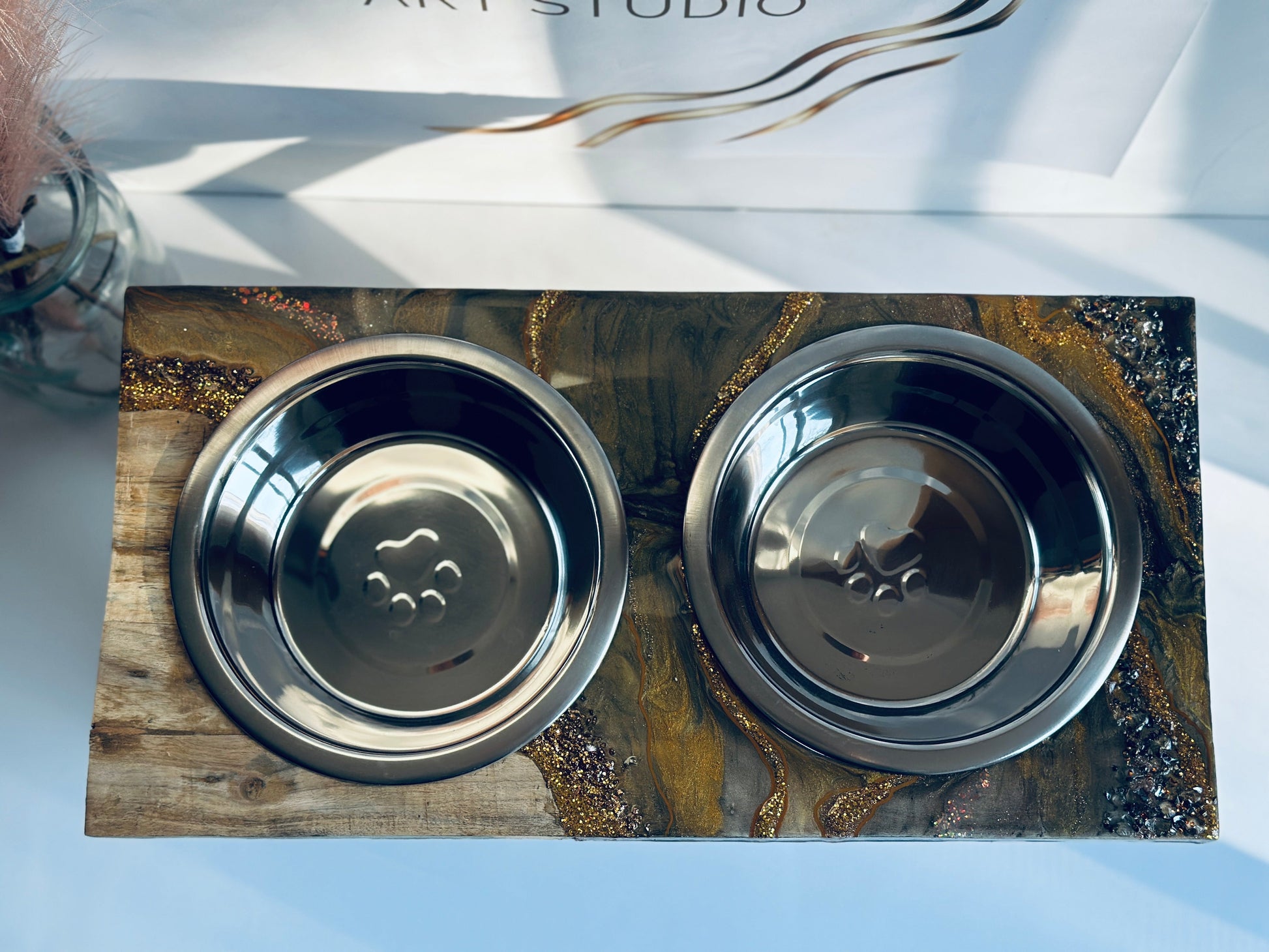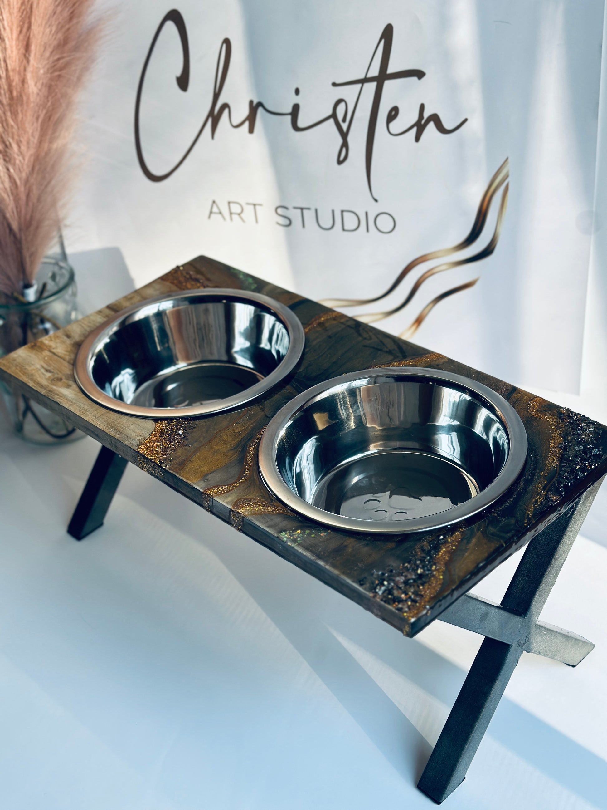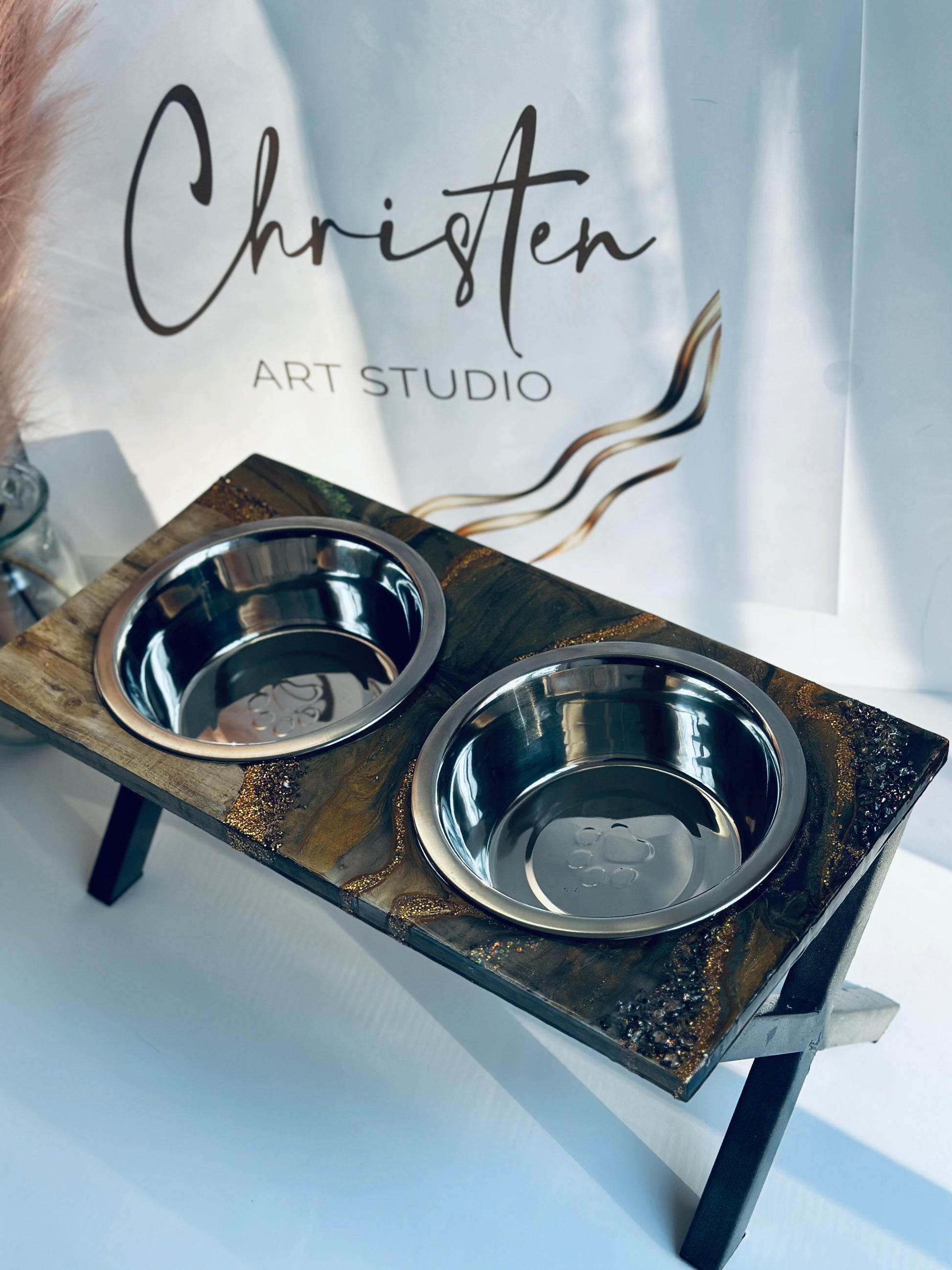 Looking for a unique pet feeder that is also high-quality and functional? Look no further than this handmade wooden pet feeder! Made with beautiful craftsmanship, this feeder is perfect for displaying your pet's food in a stylish way. The hand-poured resin design is food-safe and looks great, while the stainless steel bowl is durable and easy to clean.