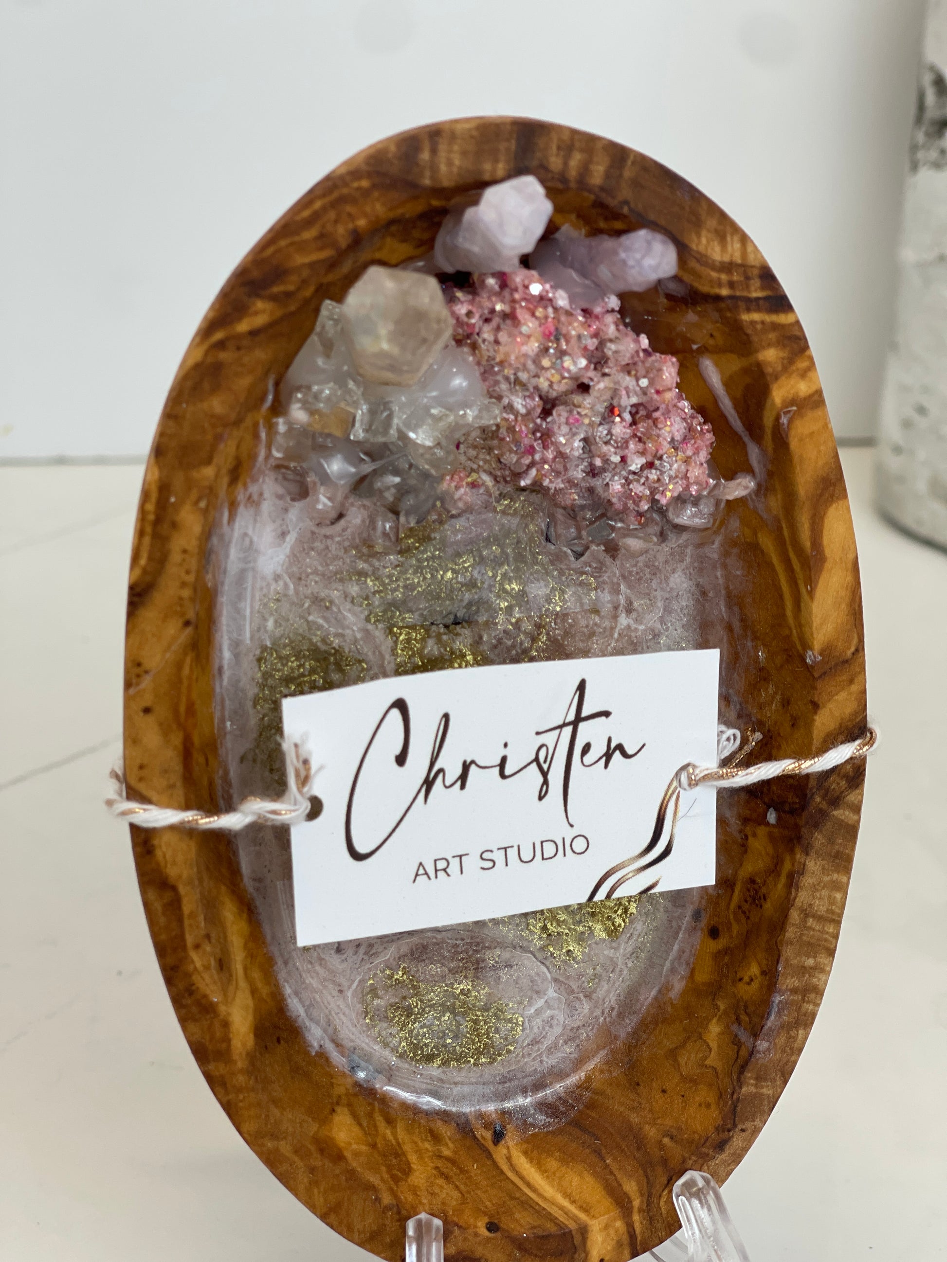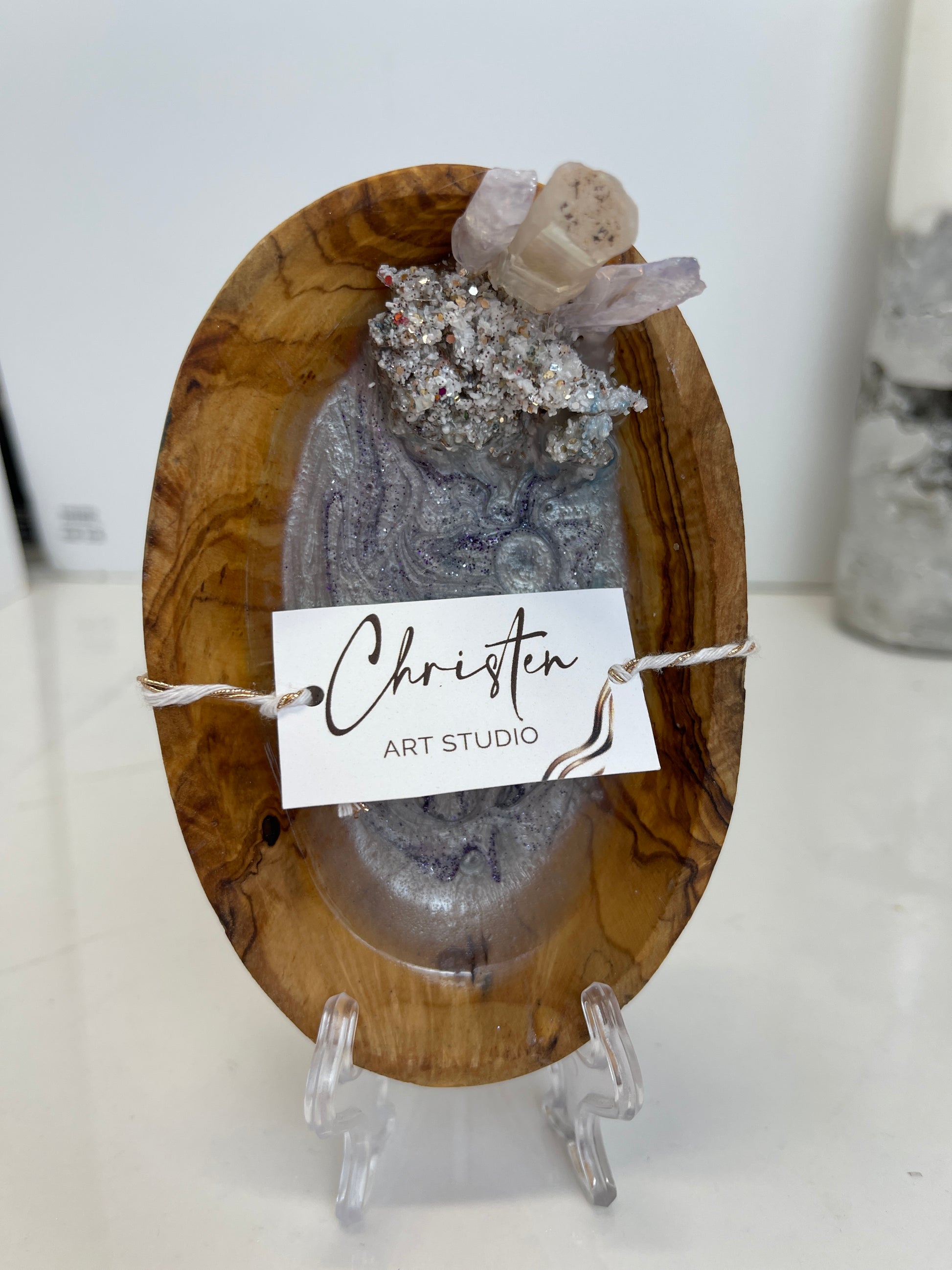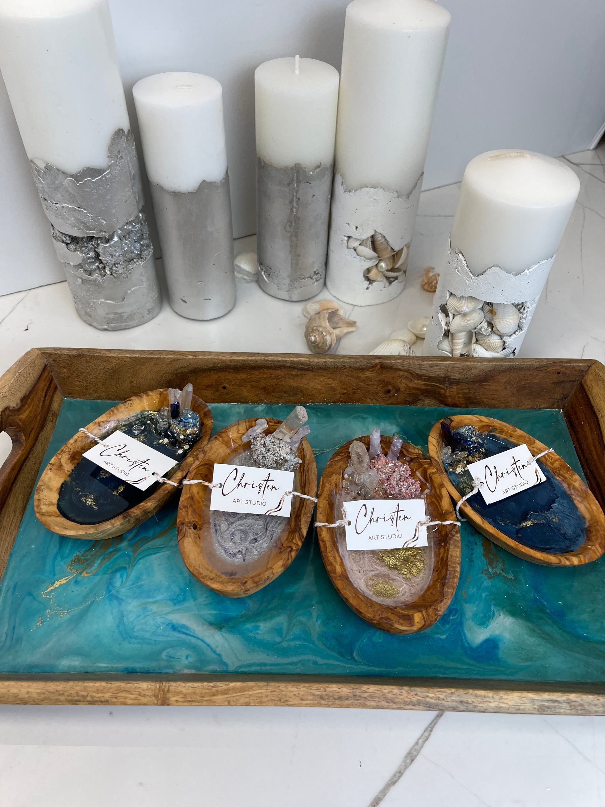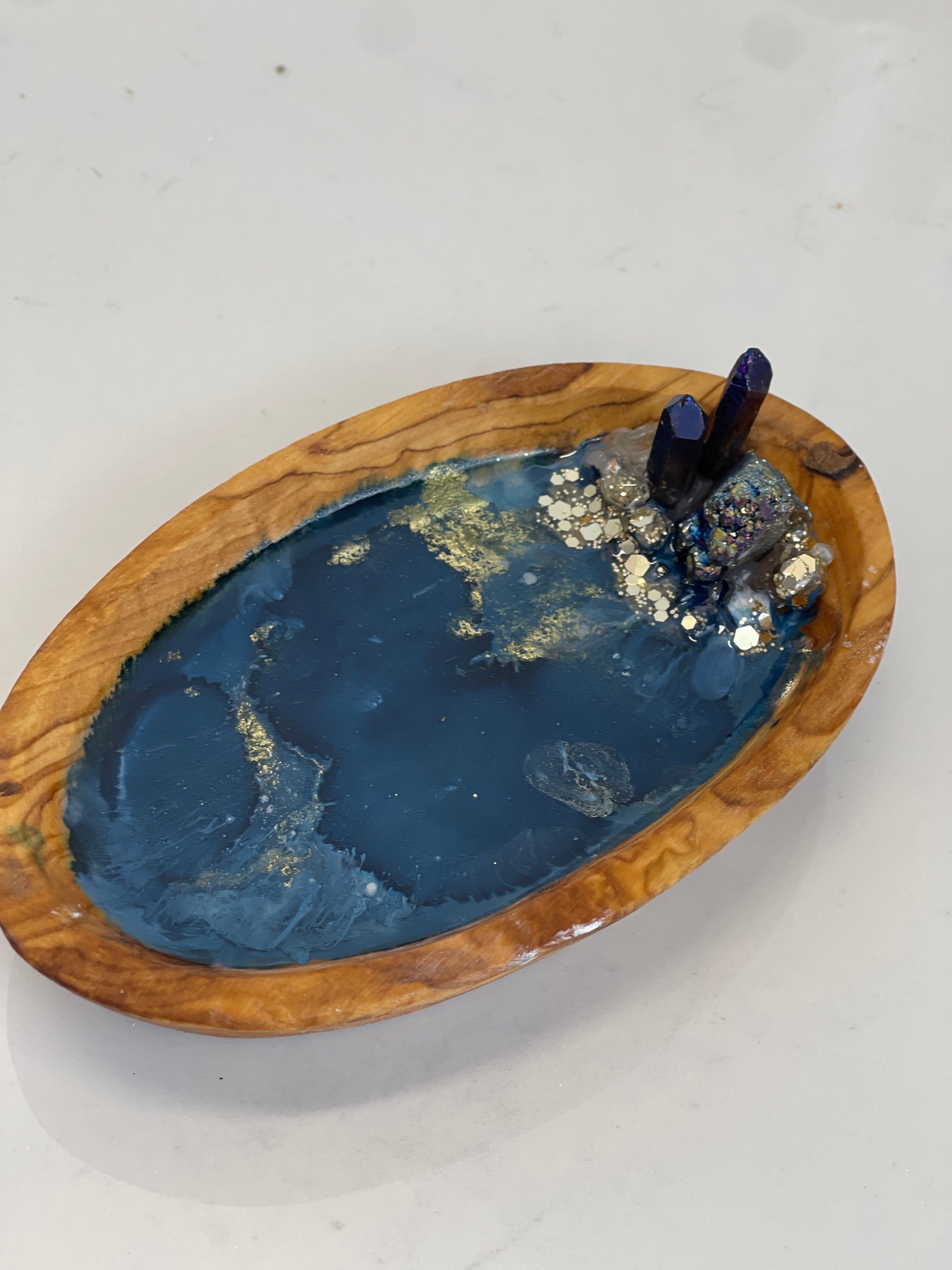 The oval wooden tray is the perfect addition to your home! The tray was hand-poured in different shades. Available in 4 colors making it a beautiful piece perfect for your keys and jewelry. Plus, the tray can even be placed on display in your kitchen and bedroom interior styling! It would also make a great wedding gift, birthday gift, or housewarming gift.