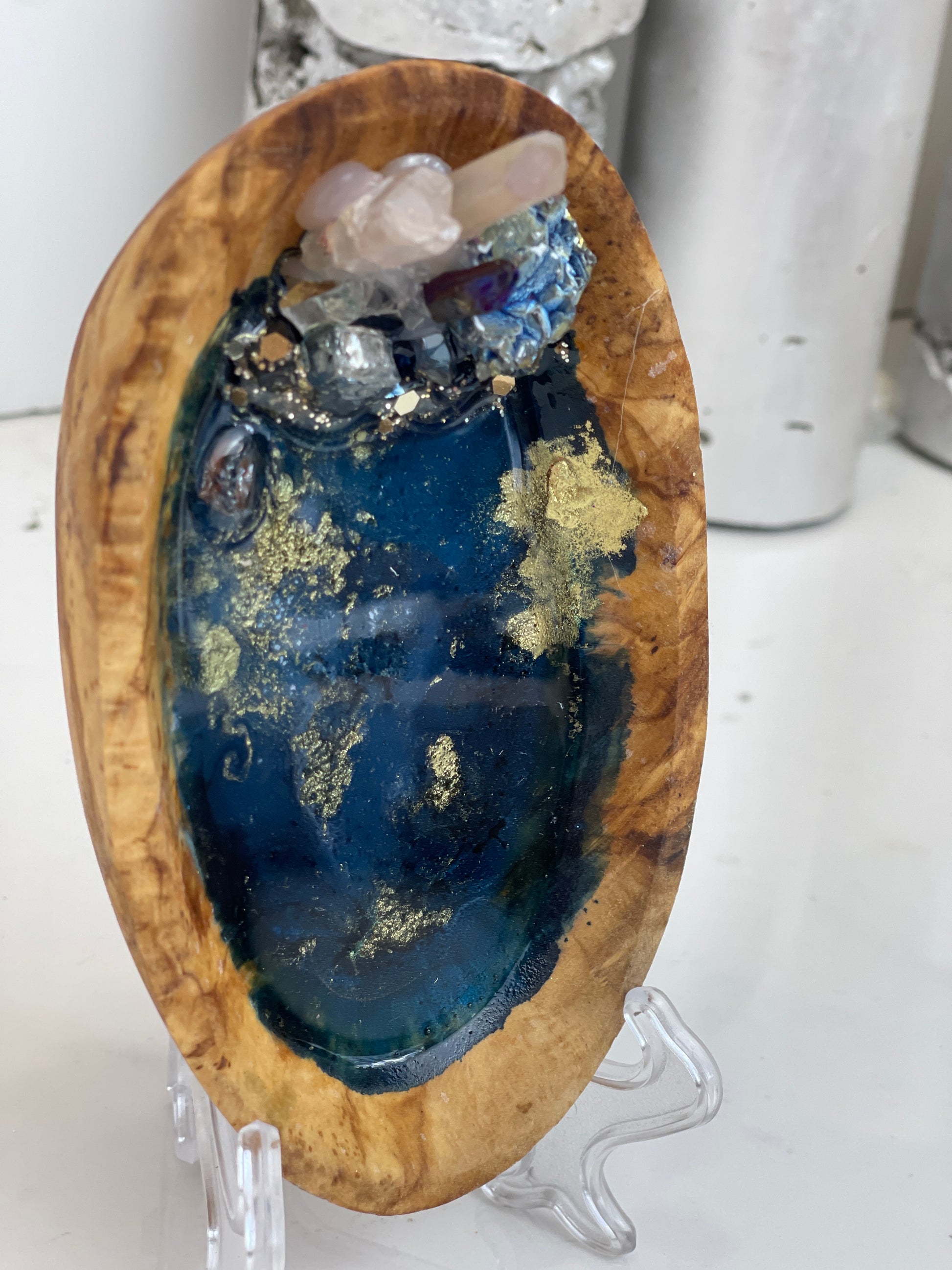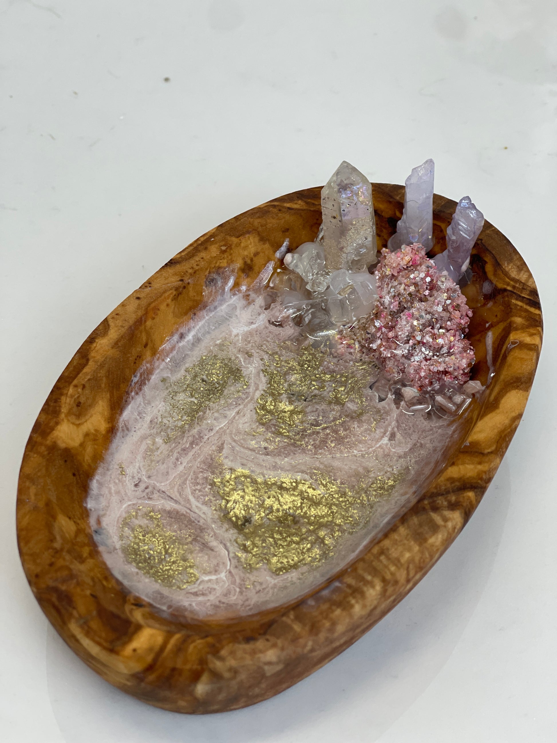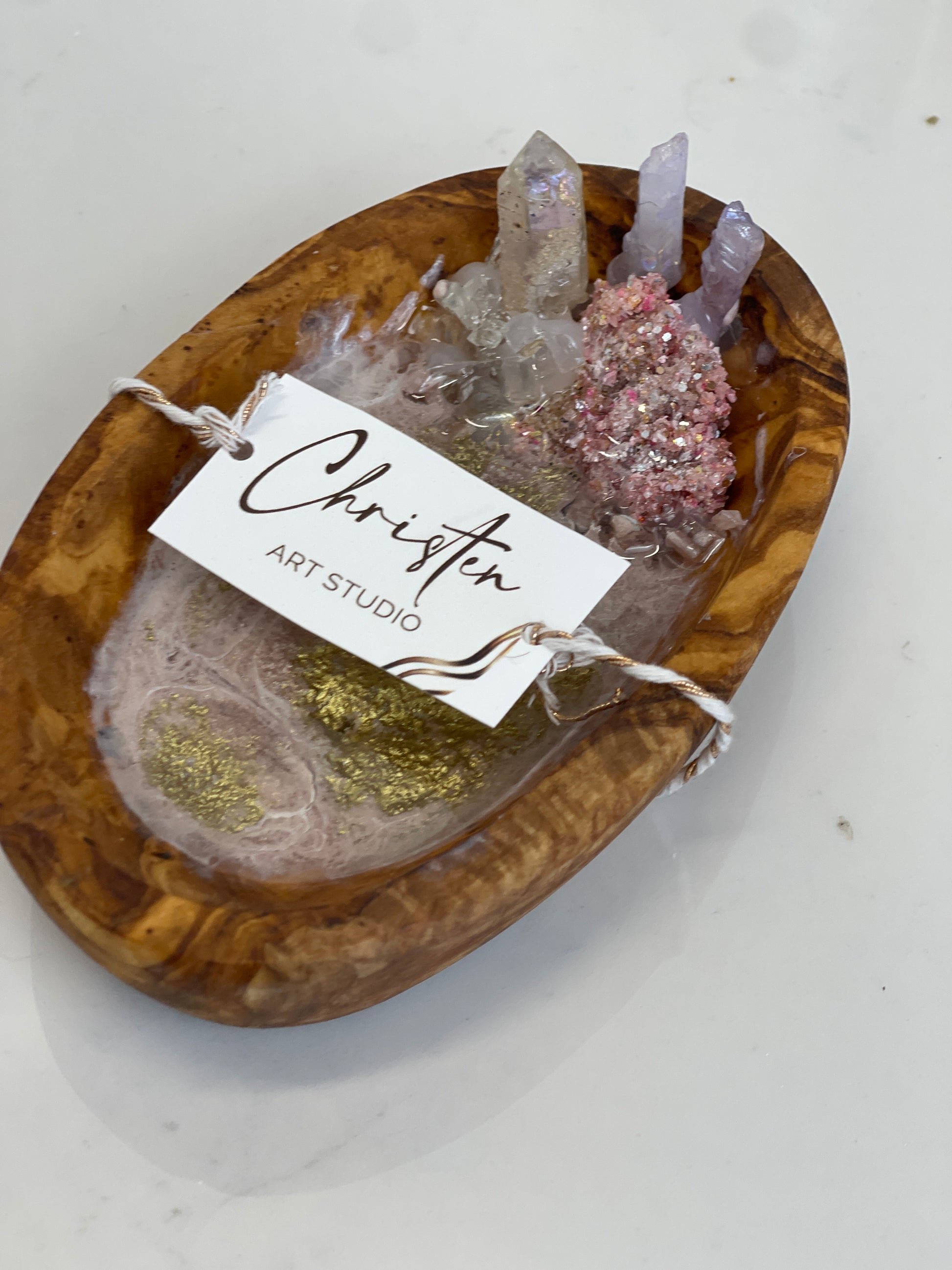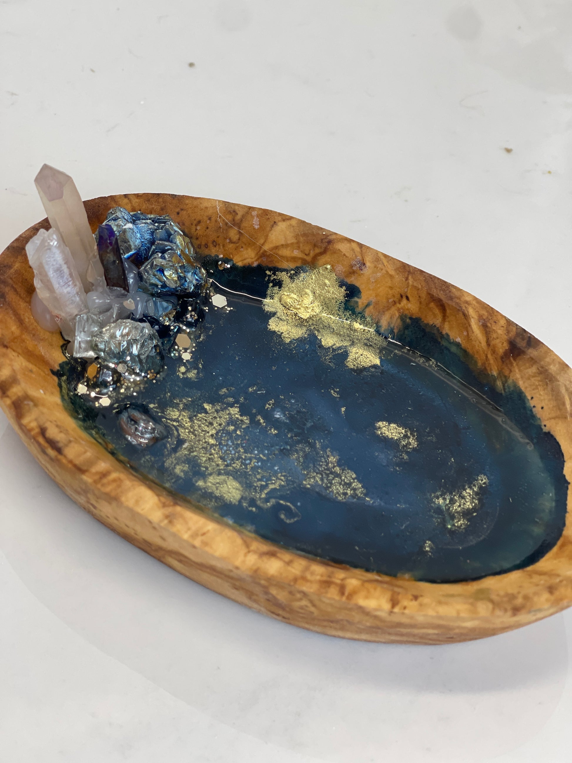 The oval wooden tray is the perfect addition to your home! The tray was hand-poured in different shades. Available in 4 colors making it a beautiful piece perfect for your keys and jewelry. Plus, the tray can even be placed on display in your kitchen and bedroom interior styling! It would also make a great wedding gift, birthday gift, or housewarming gift.