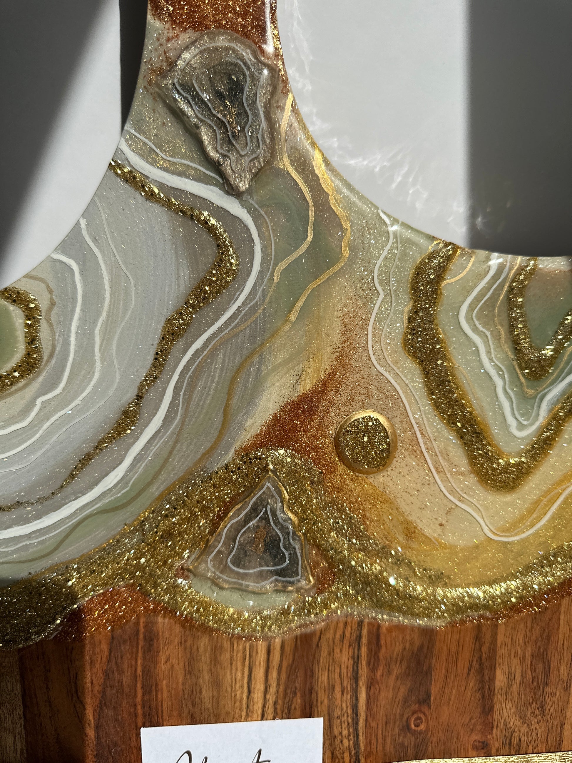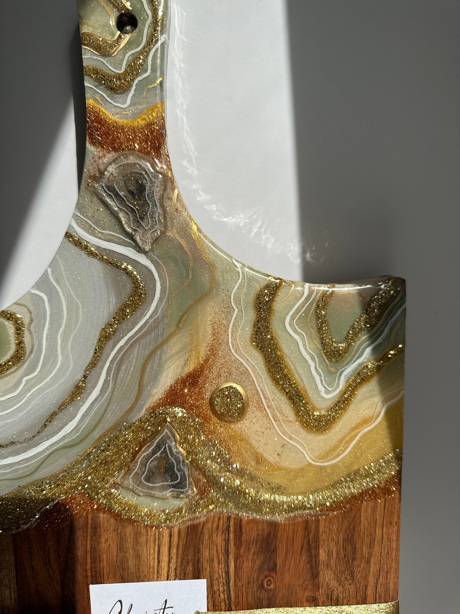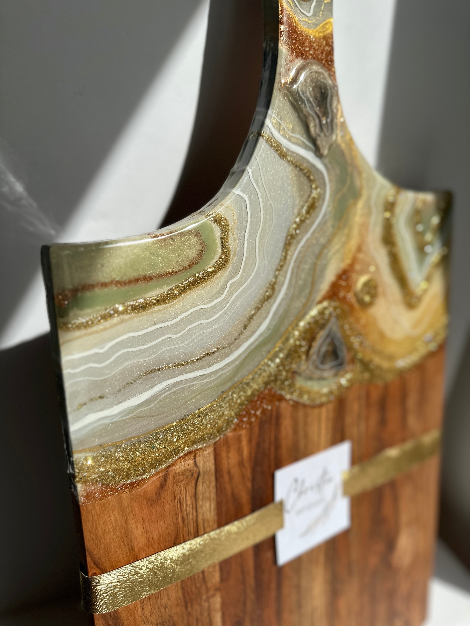 Mint Green ,Gray and Gold Geode Design Cheeseboard