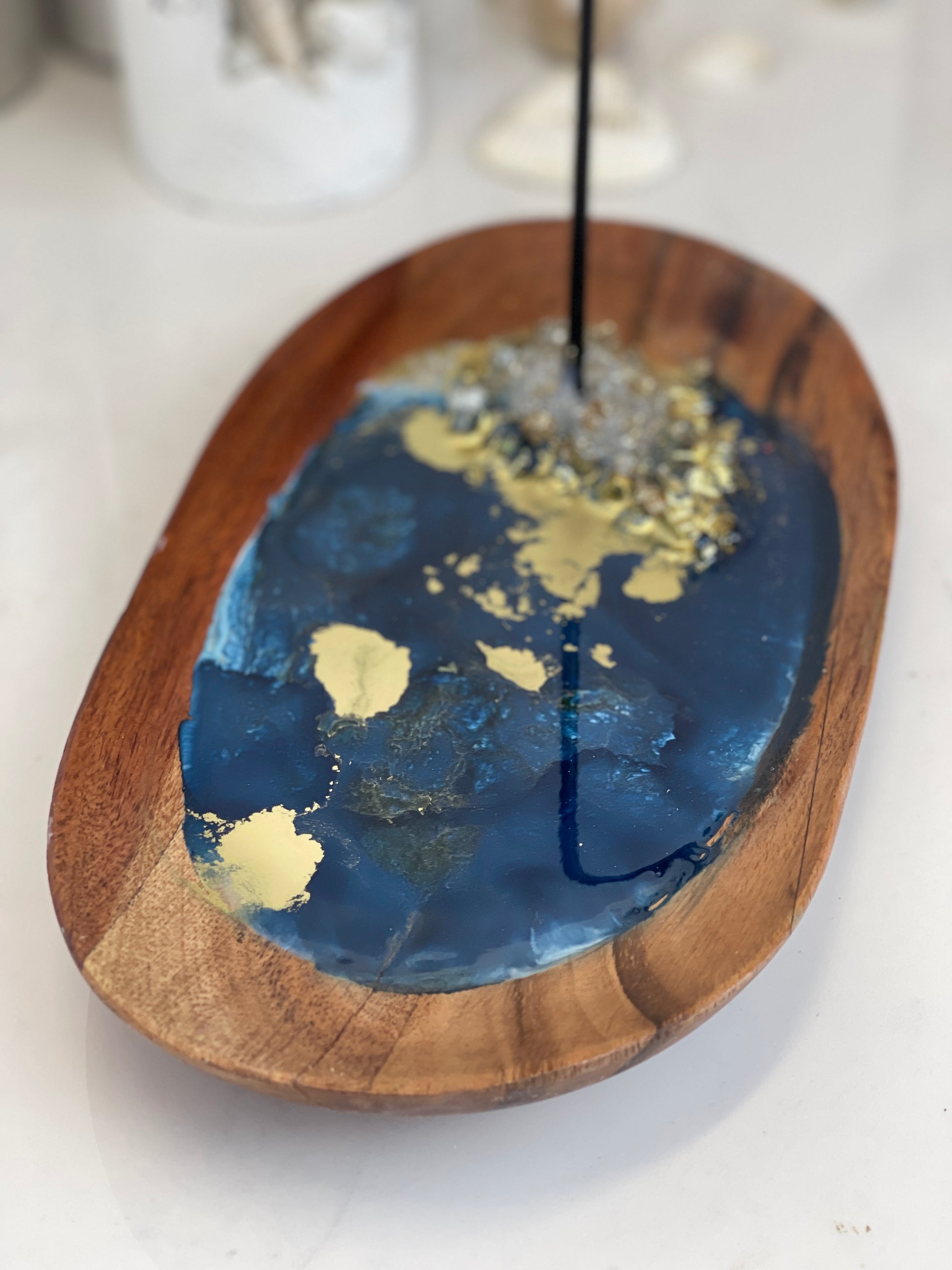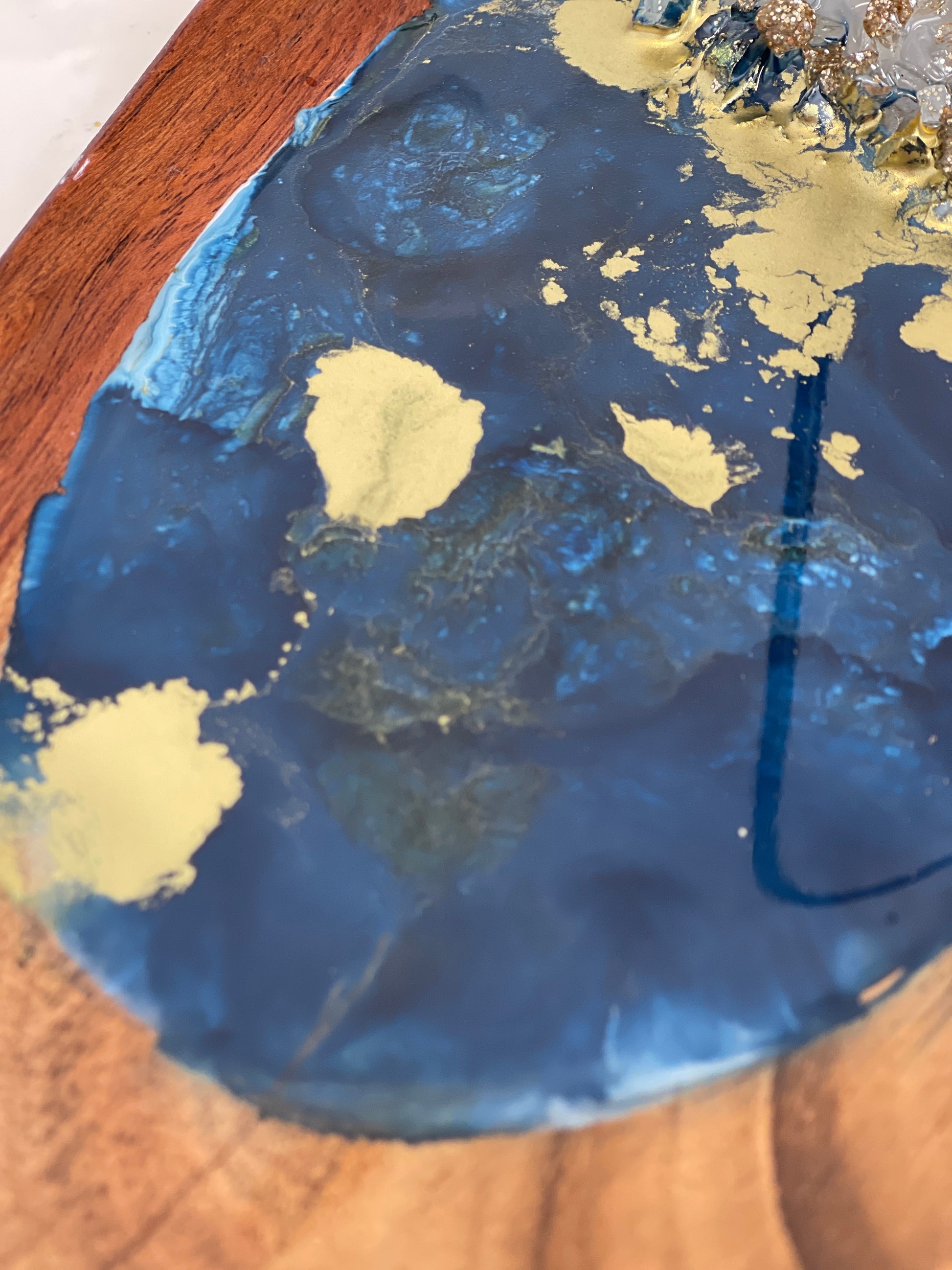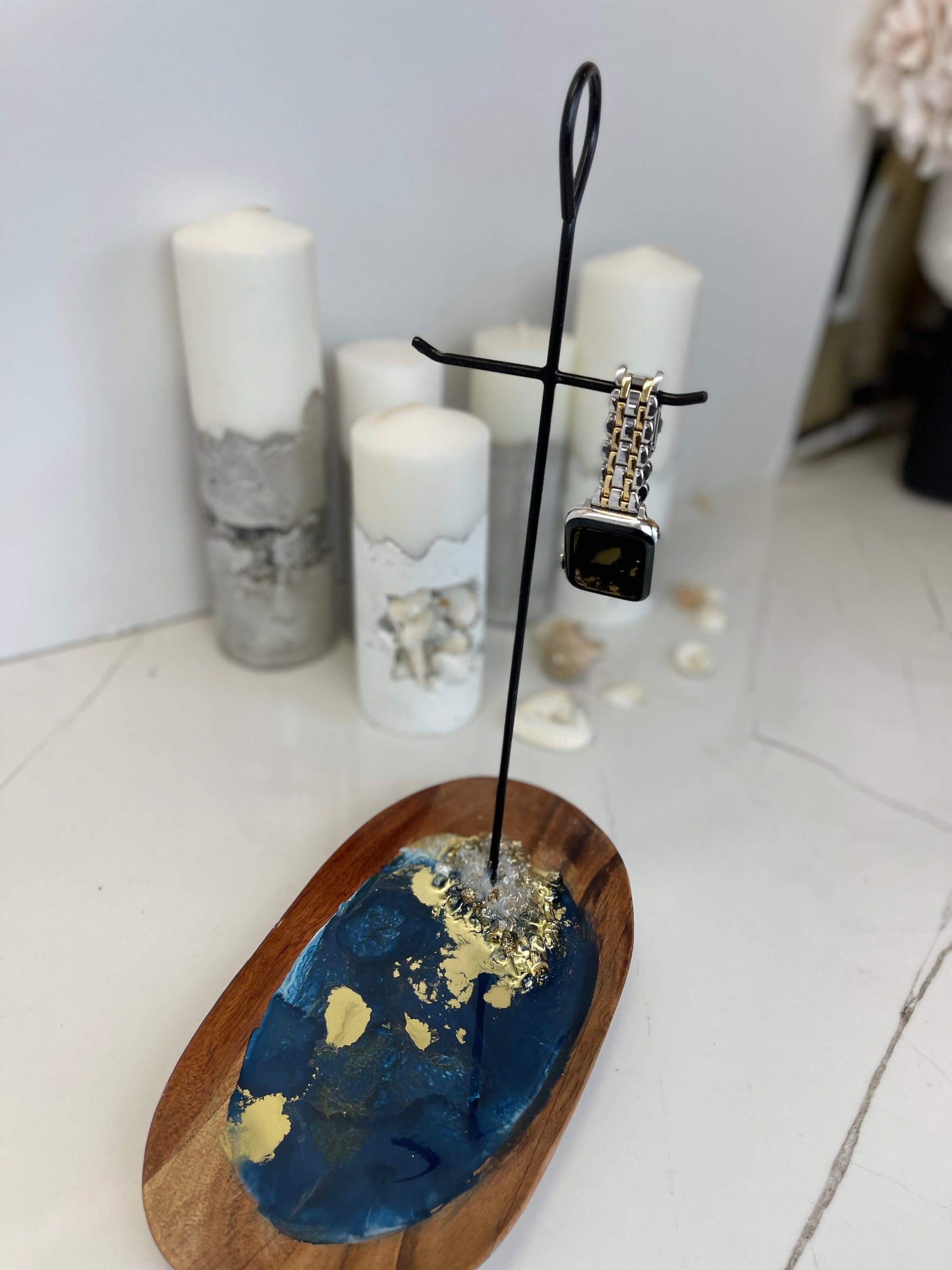 The oval resin wooden holder is the perfect addition to your home! The tray was hand-poured in different shades of dark blue, making it a beautiful piece perfect for your jewelry. Plus, the tray can even be placed on display in your bathroom and bedroom interior styling! It would also make a great wedding gift, birthday gift, or housewarming gift.