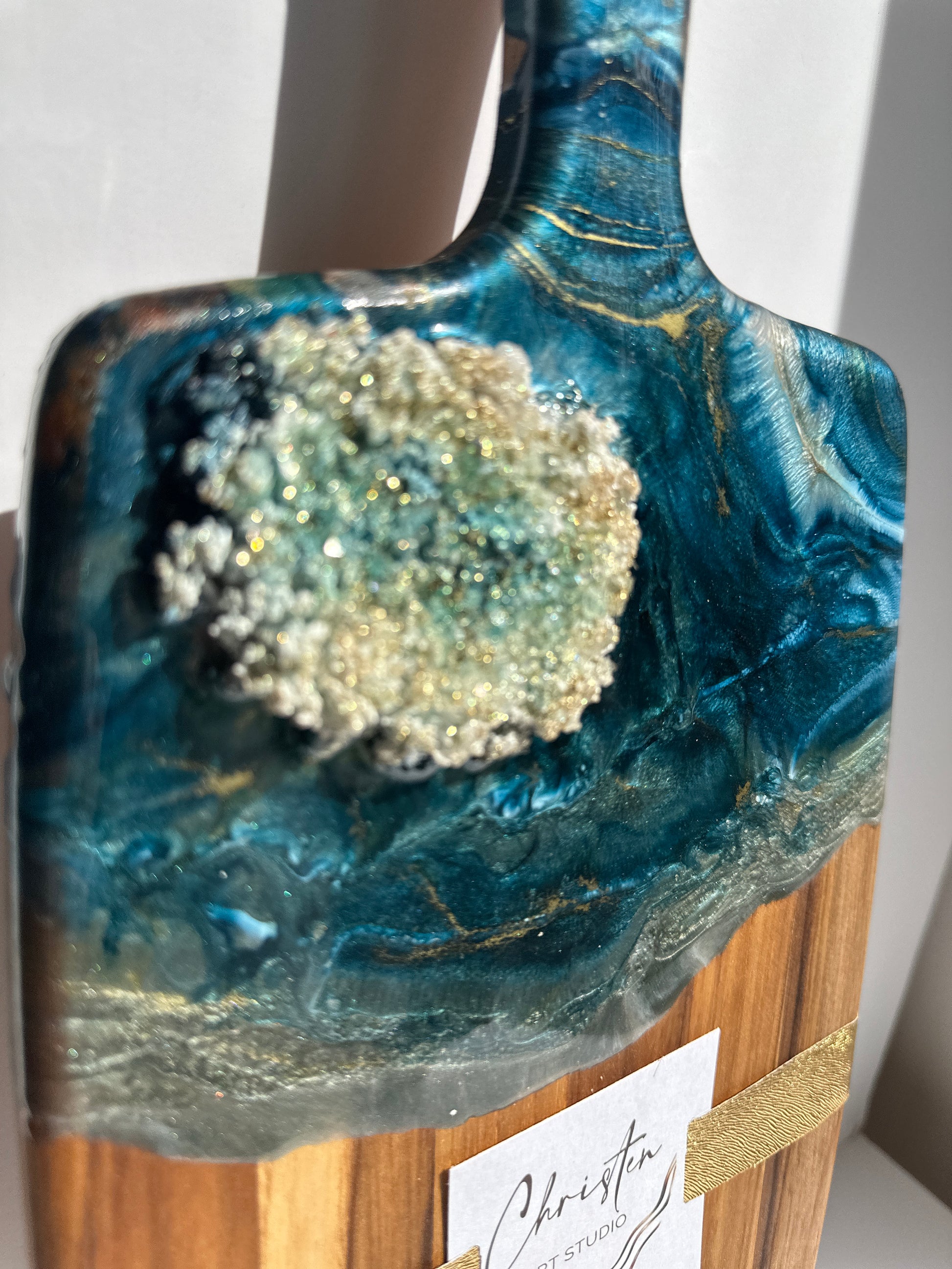If you're looking for a one-of-a-kind cheeseboard that will impress your guests, look no further than this Geode Design Cheeseboard. The stones are handmade, making this set truly unique. Perfect gift for any occasion. Whether you're giving it as a wedding gift, a birthday gift, or a housewarming gift, this set is sure to please.