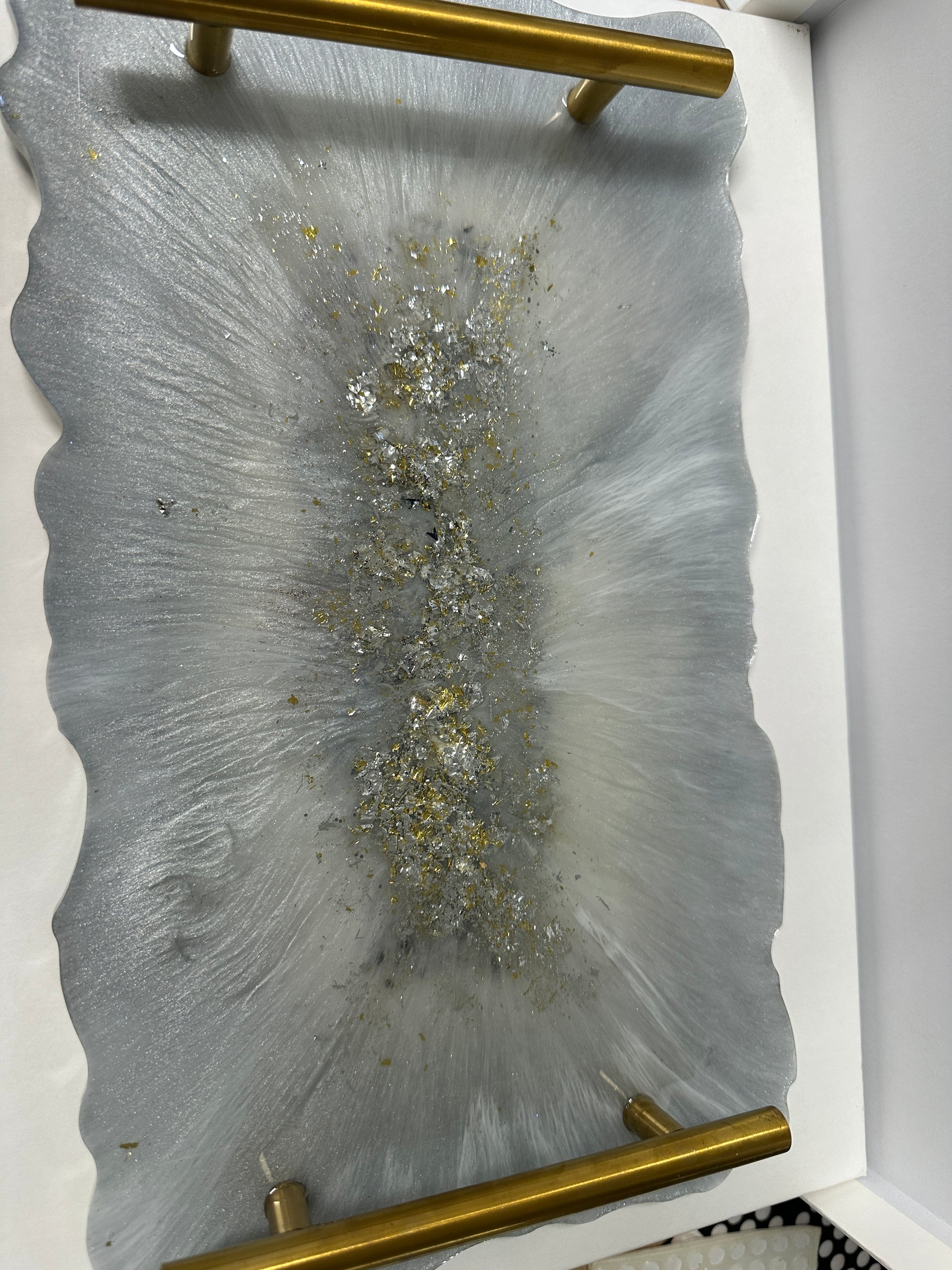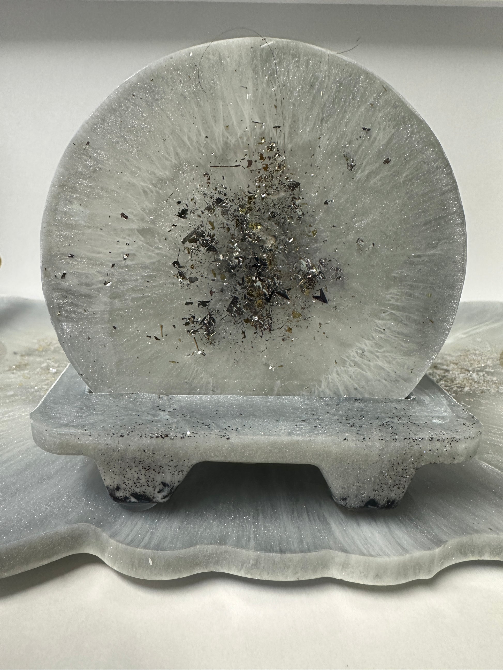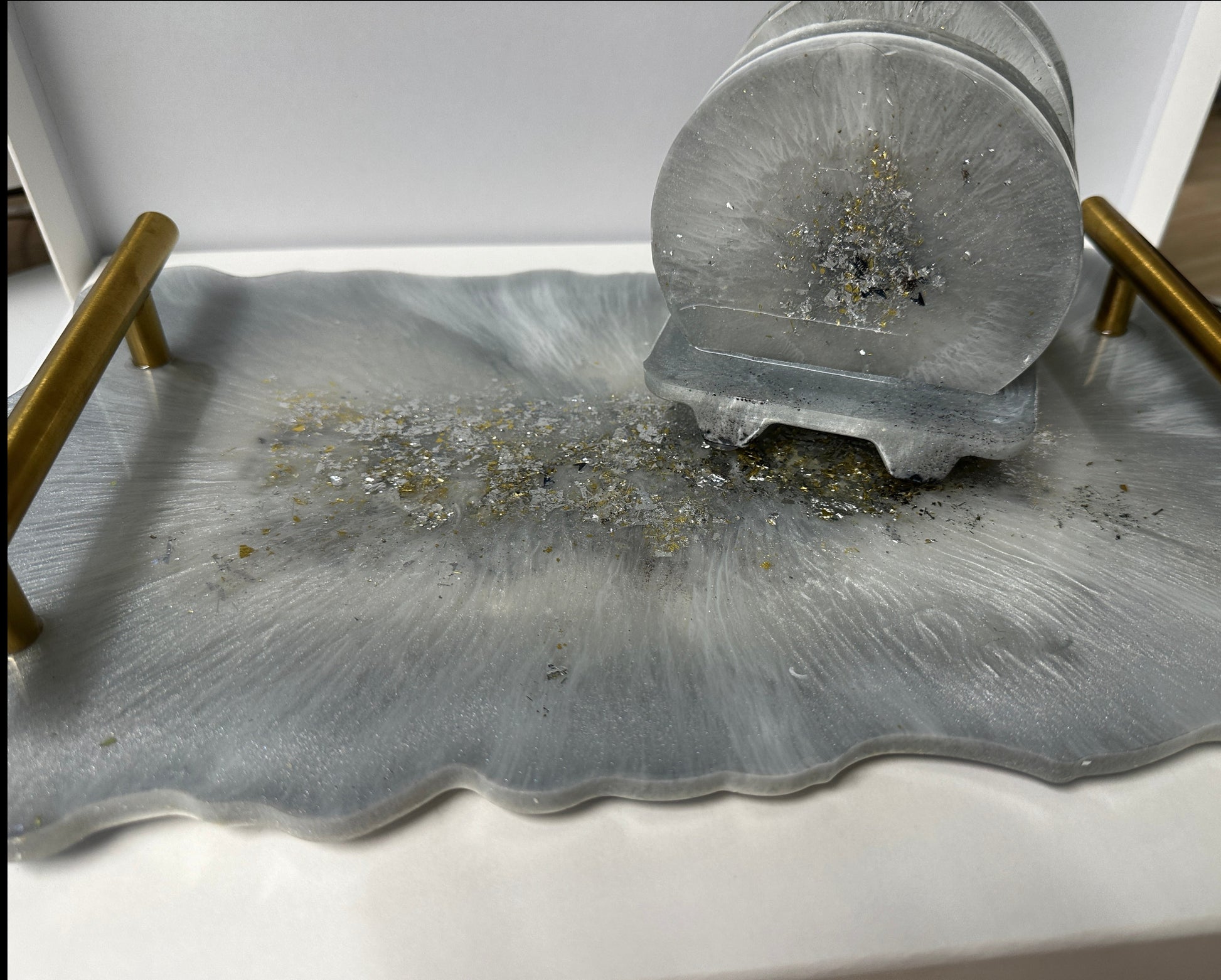 Sliver and Gold Geode Shape Coasters and Tray Set