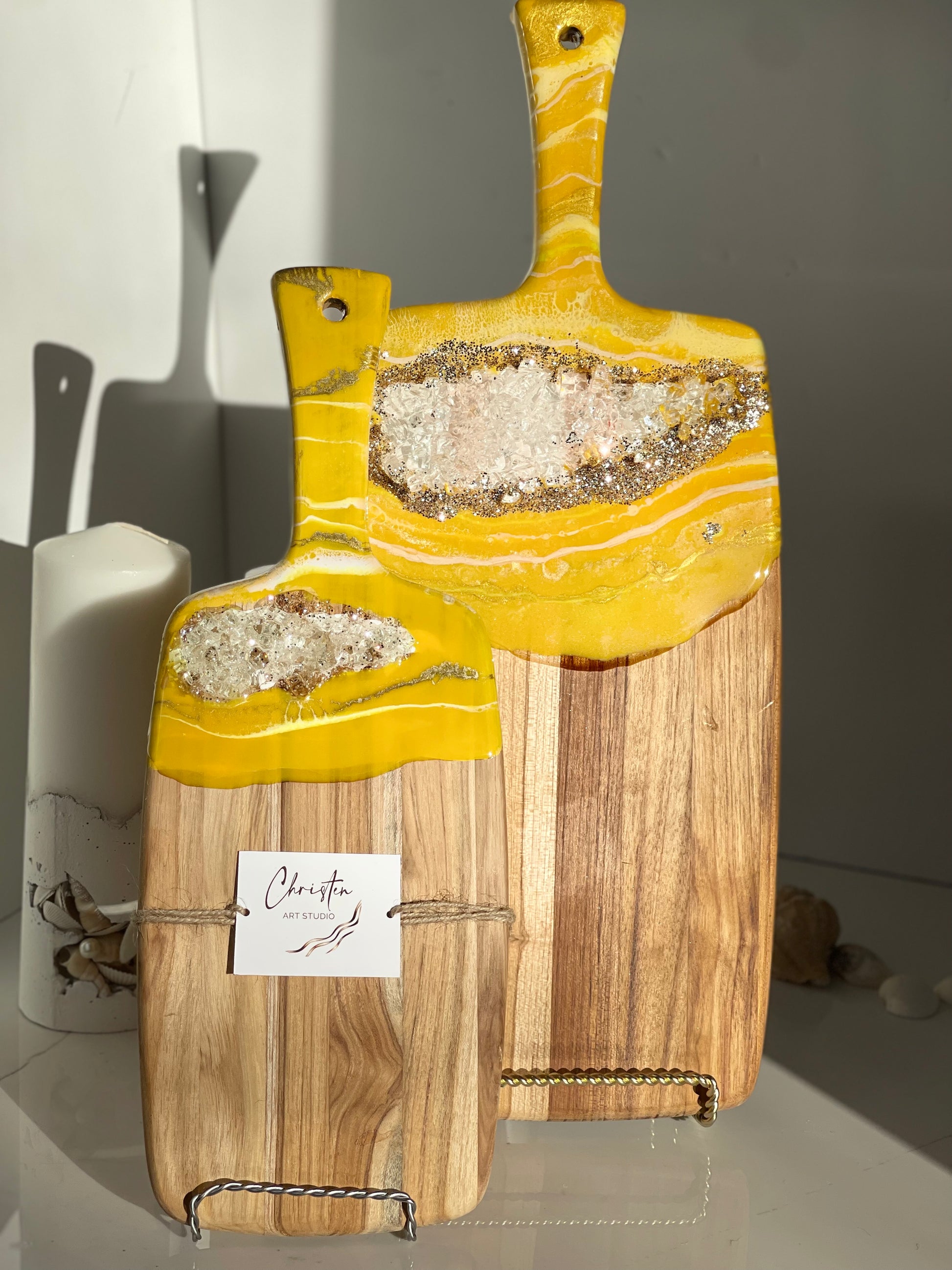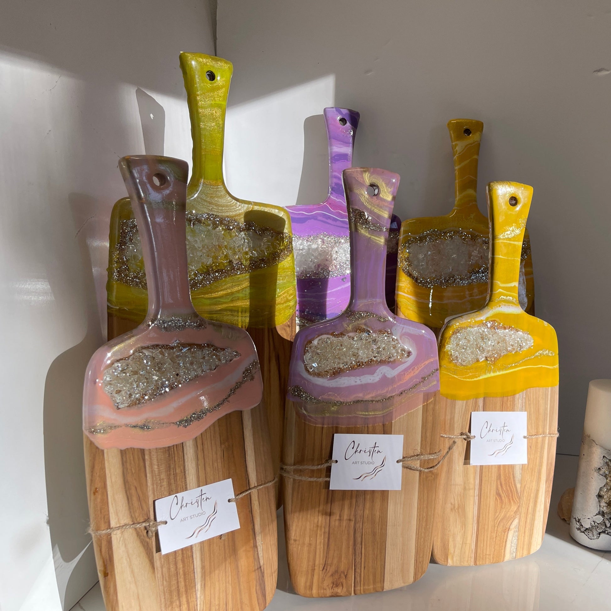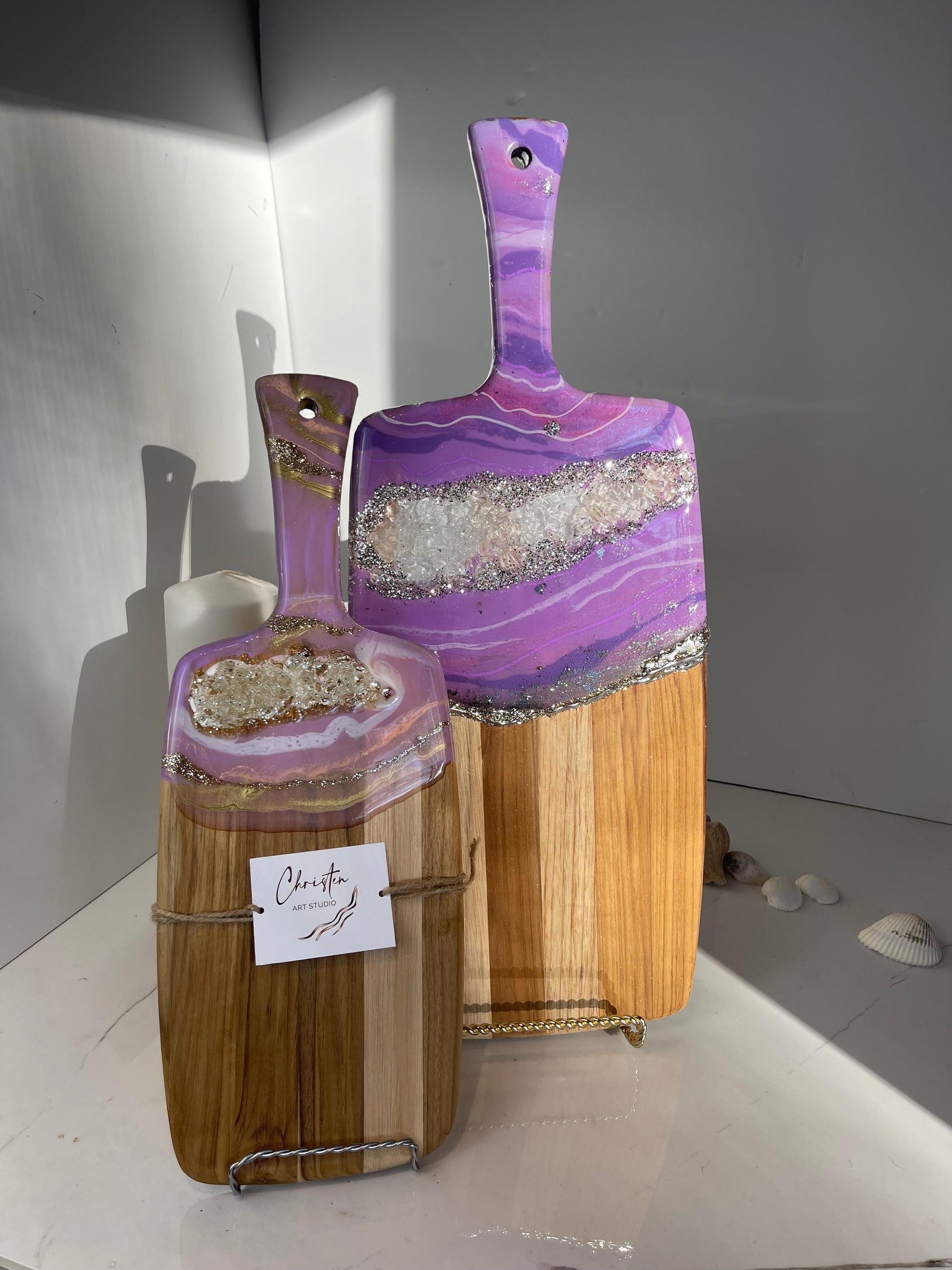 If you're looking for a one-of-a-kind cheeseboard that will impress your guests, look no further than this Geode Design Cheeseboard. The stones are handmade, making this set truly unique. Perfect gift for any occasion. Whether you're giving it as a wedding gift, a birthday gift, or a housewarming gift, this set is sure to please.