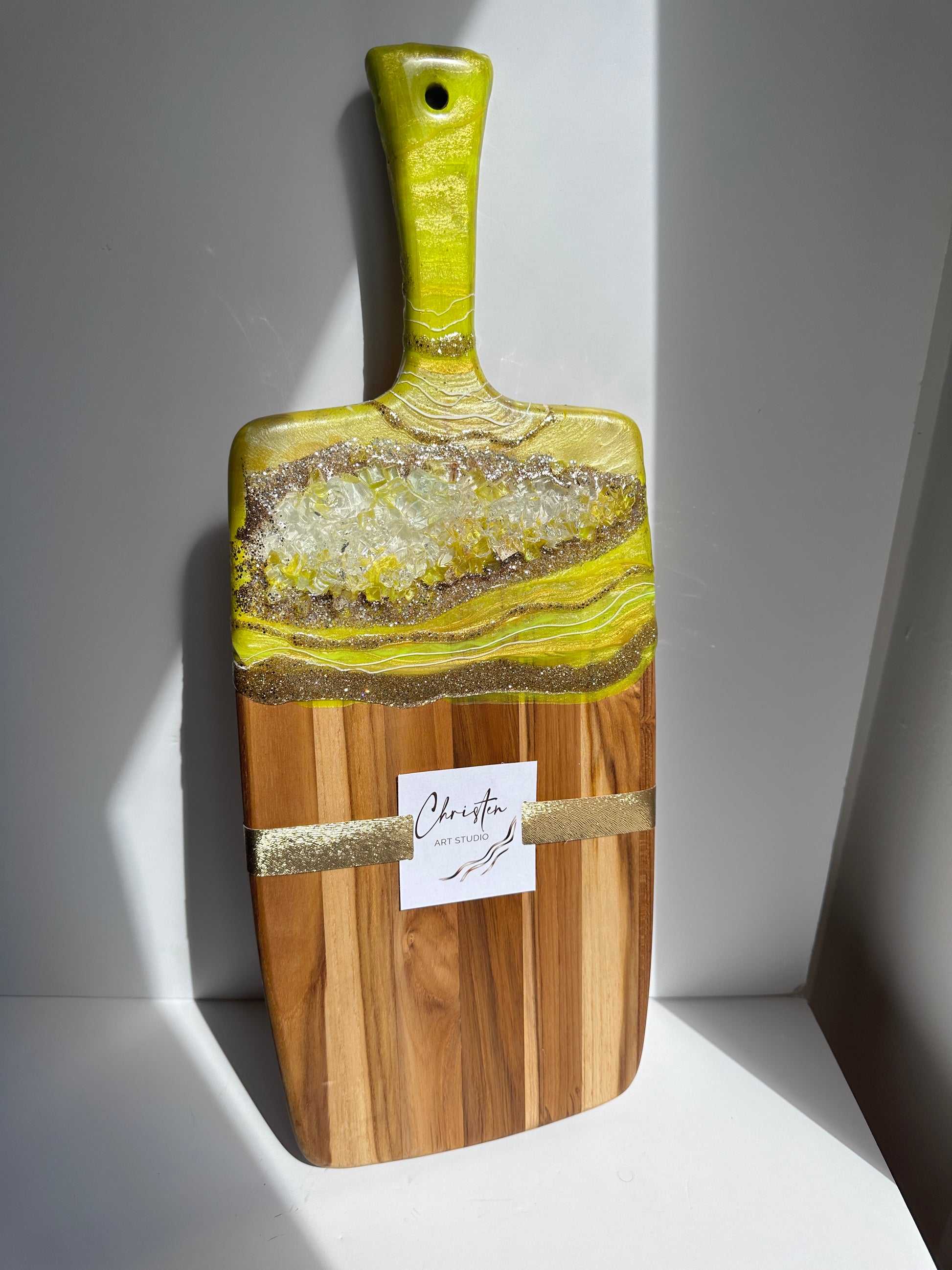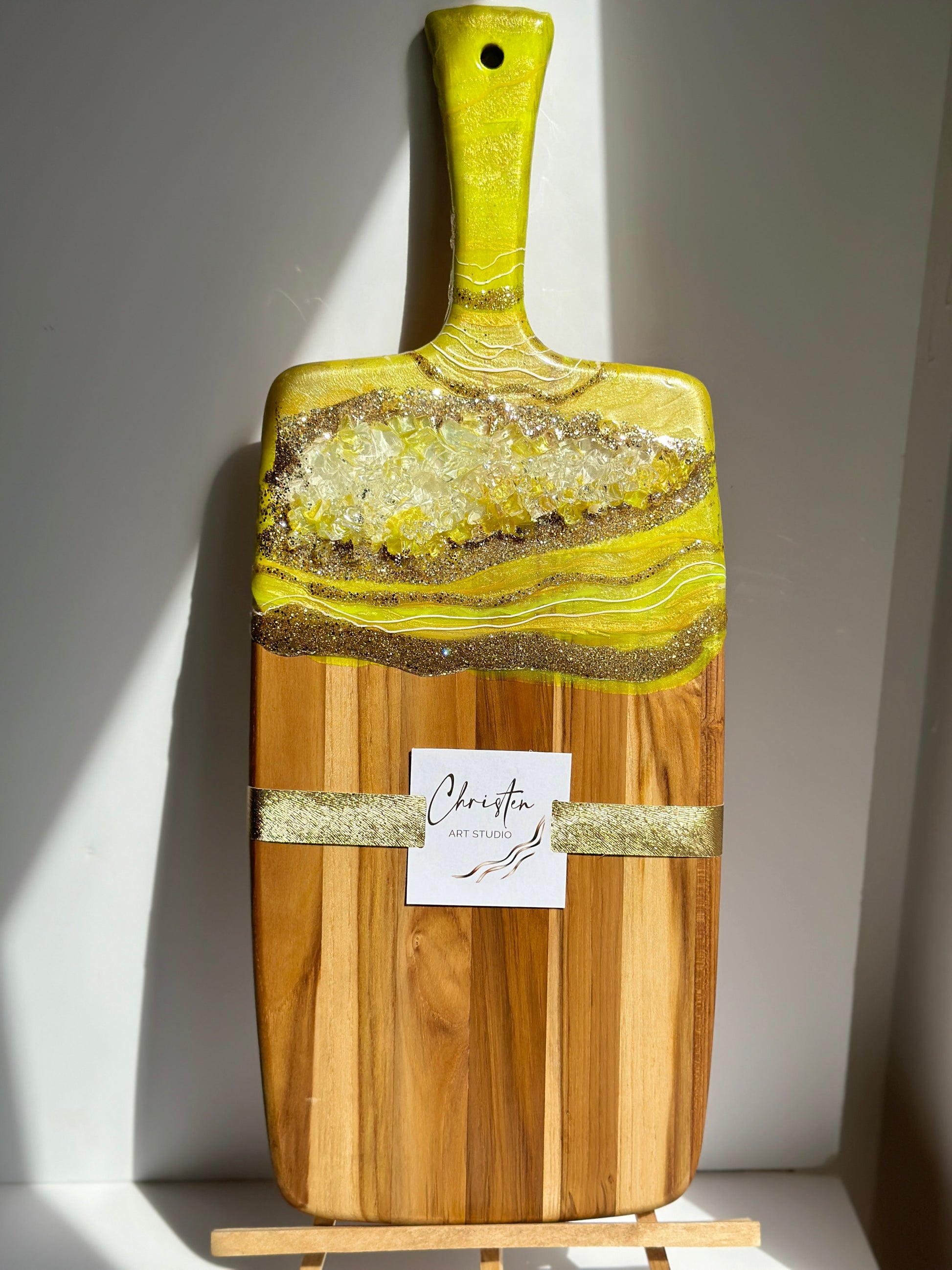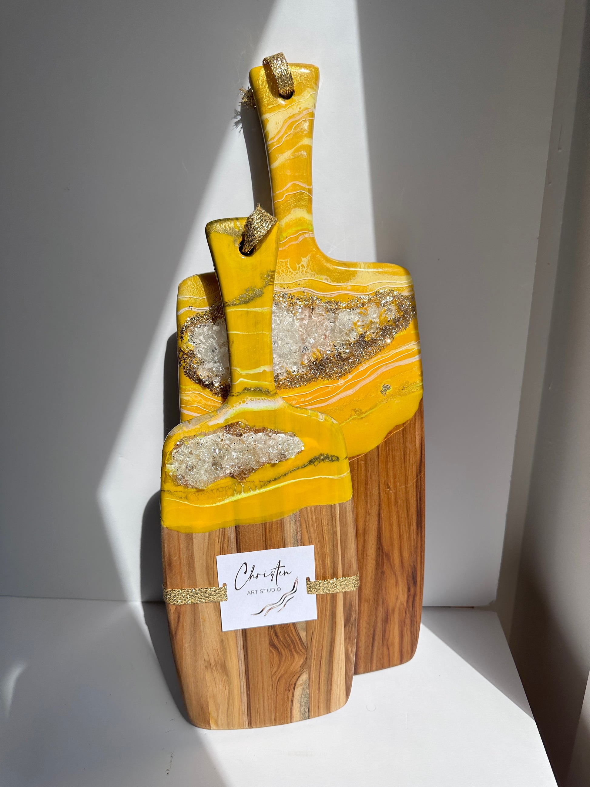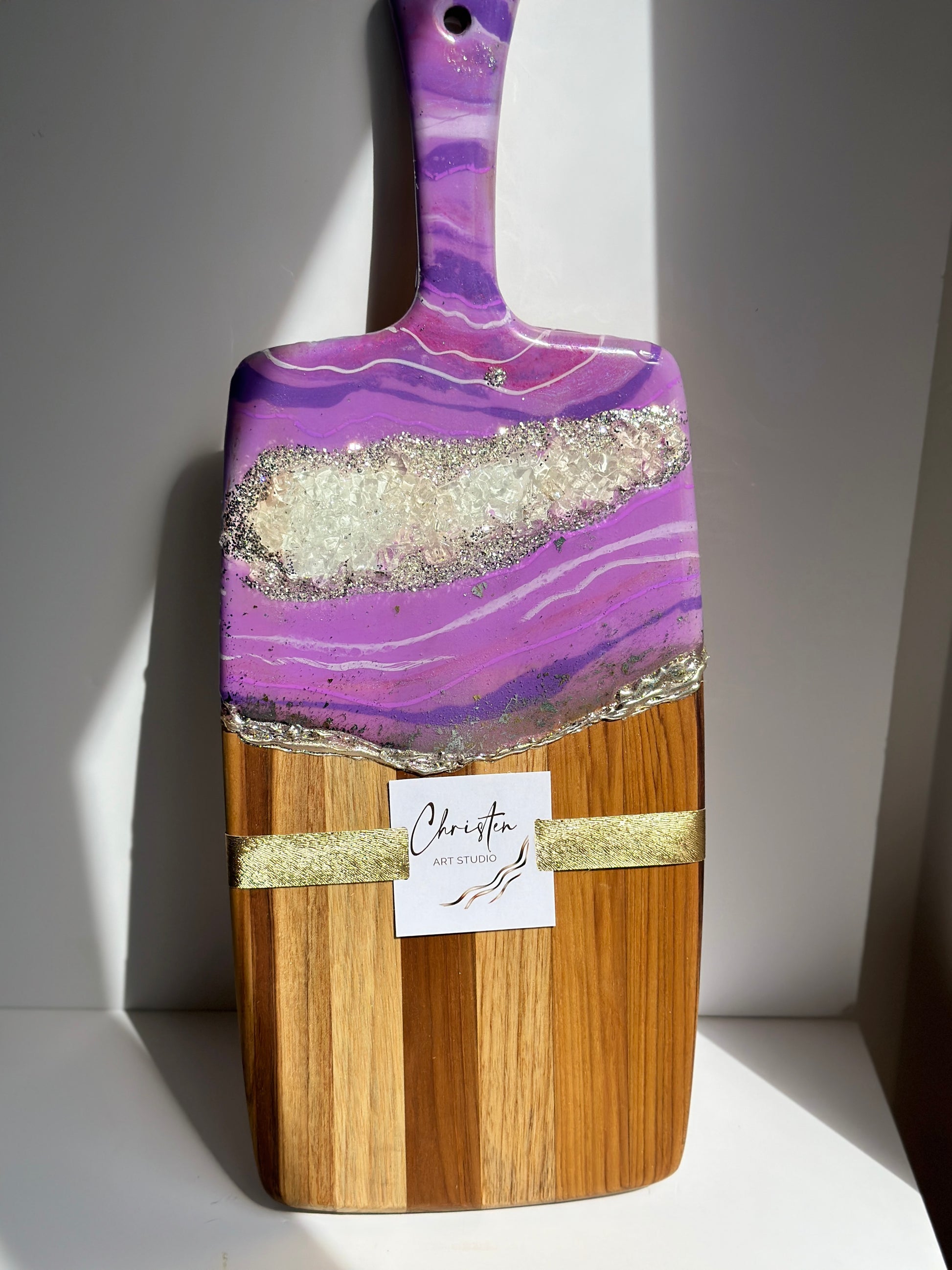 If you're looking for a one-of-a-kind cheeseboard that will impress your guests, look no further than this Geode Design Cheeseboard. The stones are handmade, making this set truly unique. Perfect gift for any occasion. Whether you're giving it as a wedding gift, a birthday gift, or a housewarming gift, this set is sure to please.